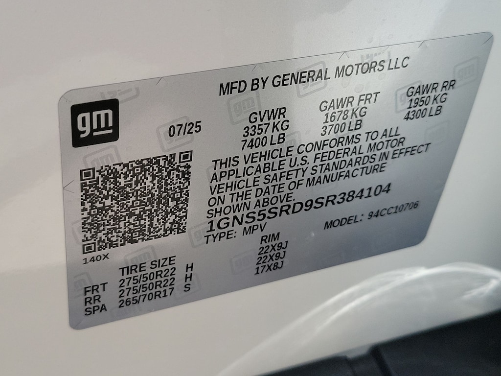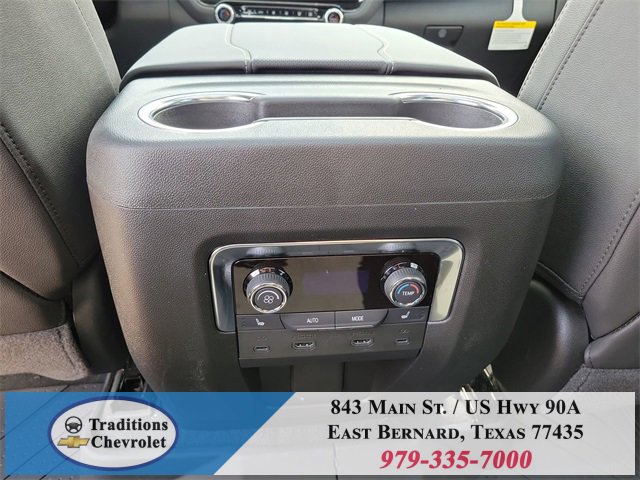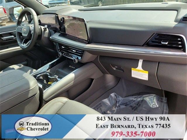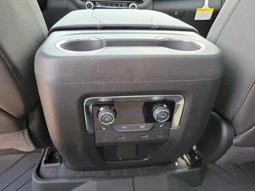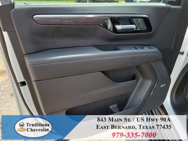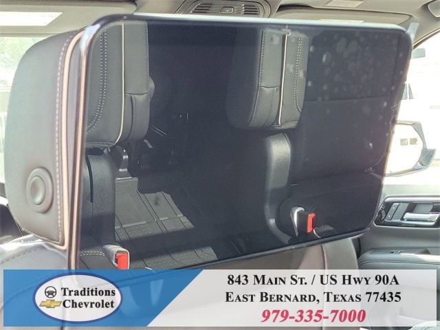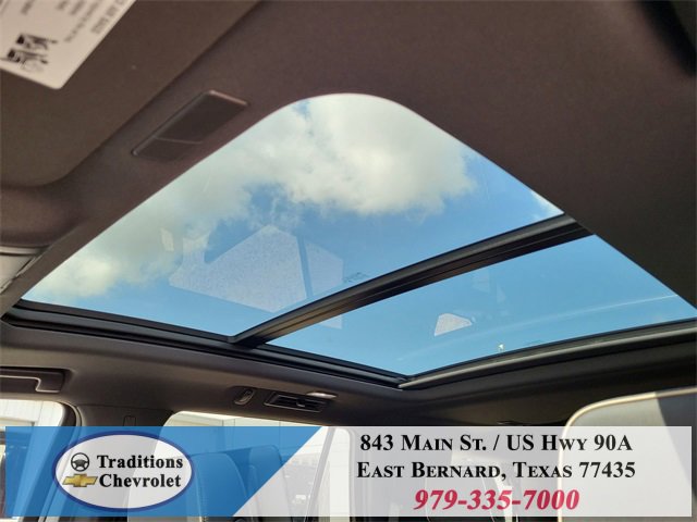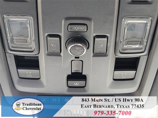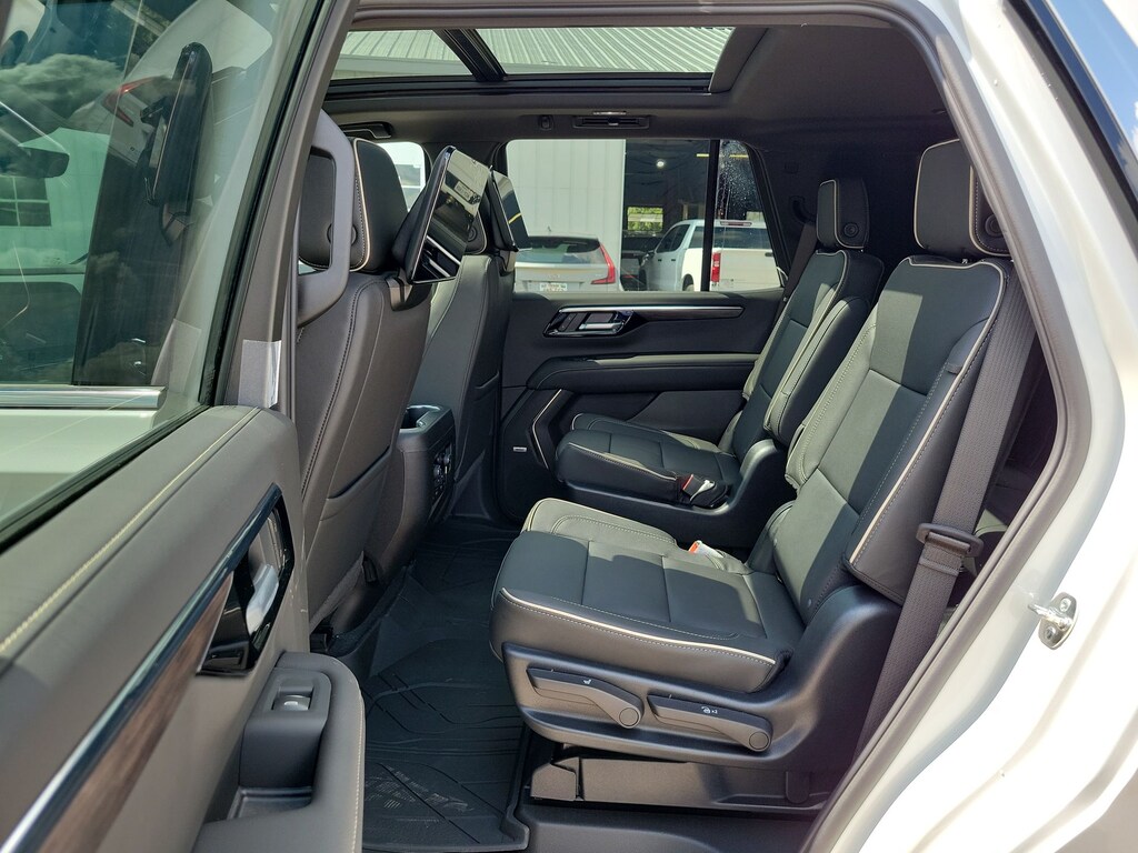 Advanced Security Package (Glass Breakage Sensor, Theft-Deterrent Alarm System, Vehicle Inclination Sensor, and Vehicle Interior Movement Sensor), Preferred Equipment Group 1LZ (3-Spoke Wrapped Steering Wheel, 3rd Row 60/40 Power-Folding Split-Bench Seat, Auto-Dimming Inside Rear-View Mirror, Chrome Mirror Caps, Color-Keyed Carpeting Floor Covering, Dual Exhaust System, Floor Console, Front LED Fog Lamps, Heated 2nd Row Outboard Seats, Heated Steering Wheel, LED Tail Lamps, Memory Settings, Outside Heated Power-Adjustable Mirrors, Power Release 2nd Row Bucket Seats, Rear Power Liftgate, Remote Start, Universal Home Remote, Wireless Phone Charging, 20 x 9 Polished Aluminum Wheels, Front Bucket Seats, and Magnetic Ride Control Suspension), Technology & Entertainment Package (Dual-Pane Power Panoramic Sunroof and Rear Seat Media System), Technology Package (15 Diagonal Multi-Color Head-Up Display and AutoSense Hands-Free Power Liftgate), License Plate Front Mounting Package, Jet Black w/Perforated Leather Seat Trim, 10 Speakers, 3 Years SiriusXM, 3.23 Rear Axle Ratio, 3rd row seats: split-bench, 4-Way Power Driver Lumbar Seat Adjuster, 4-Way Power Front Passenger Lumbar Seat Adjuster, 4-Wheel Disc Brakes, 8-Way Power Driver Seat Adjuster, 8-Way Power Front Passenger Seat Adjuster, ABS brakes, Adaptive suspension, Air Conditioning, Alloy wheels, AM/FM radio: SiriusXM with 360L, Apple CarPlay/Android Auto, Auto High-beam Headlights, Auto-dimming door mirrors, Auto-dimming Rear-View mirror, Auto-leveling suspension, Automatic temperature control, Brake assist, Bumpers: body-color, Compass, Delay-off headlights, Driver door bin, Driver vanity mirror, Dual front impact airbags, Dual front side impact airbags, Electronic Stability Control, Emergency communication system: OnStar and Chevrolet connected services capable, Exterior Parking Camera Rear, Four wheel independent suspension, Front anti-roll bar, Front Center Armrest, Front dual zone A/C, Front fog lights, Front reading lights, Fully automatic headlights, Garage door transmitter, Heated door mirrors, Heated front seats, Heated rear seats, Heated steering wheel, Illuminated entry, Low tire pressure warning, Memory seat, Navigation system: Google built-in compatibility (select service plan required, terms and limitations apply), Occupant sensing airbag, Outside temperature display, Overhead airbag, Overhead console, Panic alarm, Passenger door bin, Passenger vanity mirror, Perforated Leather Seat Trim, Power door mirrors, Power driver seat, Power Liftgate, Power passenger seat, Power steering, Power windows, Power-Retractable Assist Steps, Premium audio system: Chevrolet Infotainment 3 Premium, Radio data system, Radio: 17.7 Diagonal Advanced Color LCD Display, Rain sensing wipers, Rear air conditioning, Rear anti-roll bar, Rear reading lights, Rear window defroster, Rear window wiper, Remote keyless entry, Security system, Speed control, Speed-sensing steering, Split folding rear seat, Spoiler, Steering wheel memory, Steering wheel mounted audio controls,