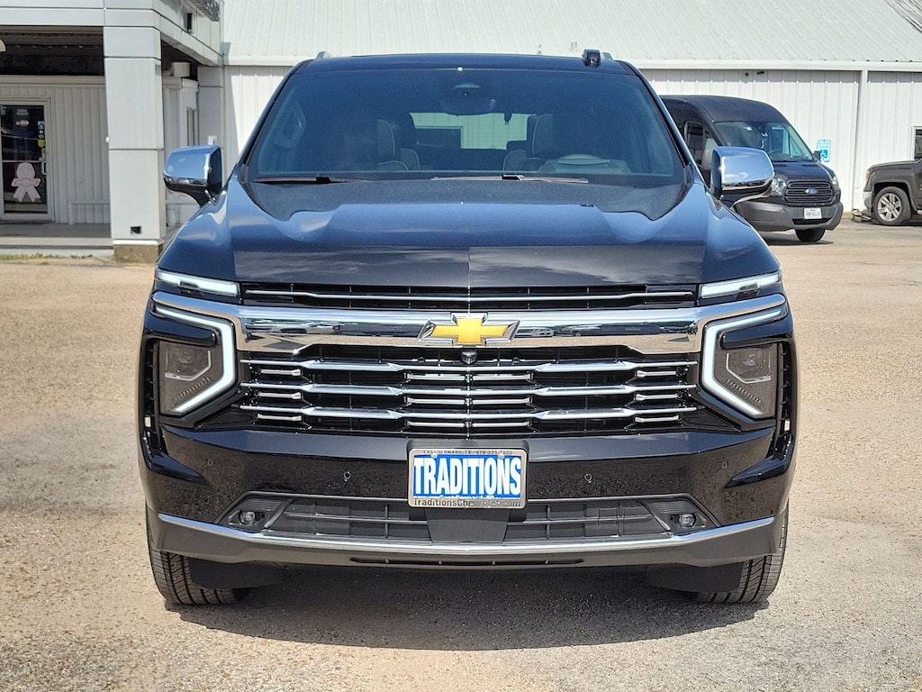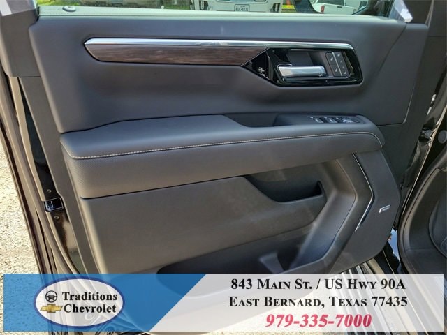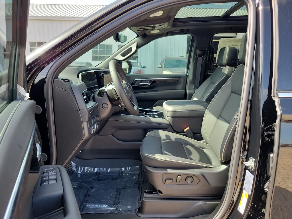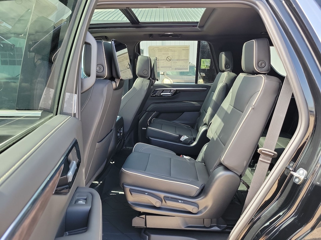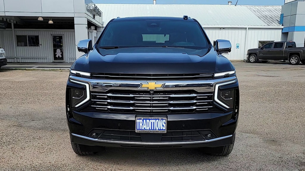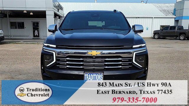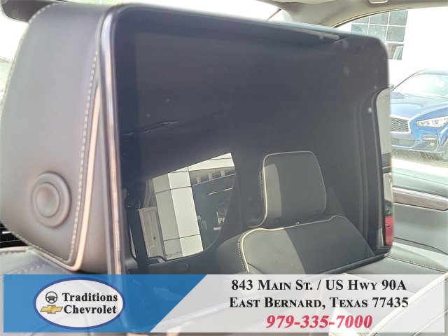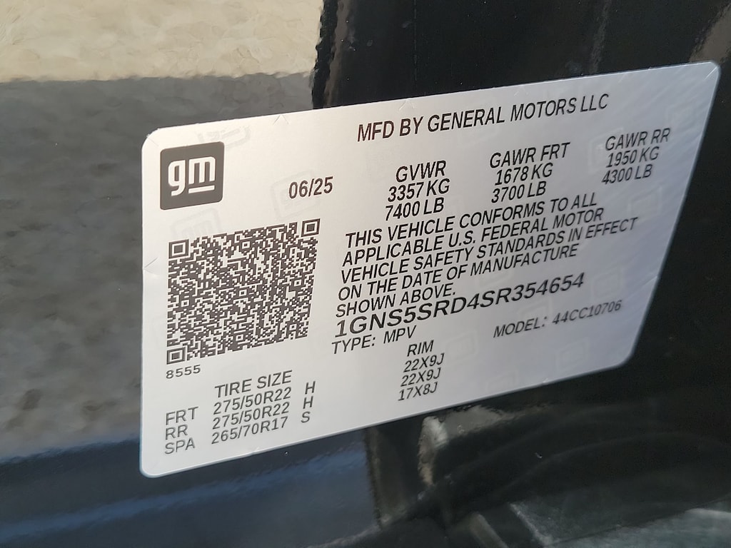 Advanced Security Package (Glass Breakage Sensor, Theft-Deterrent Alarm System, Vehicle Inclination Sensor, and Vehicle Interior Movement Sensor), Advanced Trailering Package (Smart Trailer Integration Indicator), Preferred Equipment Group 1LZ (3-Spoke Wrapped Steering Wheel, 3rd Row 60/40 Power-Folding Split-Bench Seat, Auto-Dimming Inside Rear-View Mirror, Chrome Mirror Caps, Color-Keyed Carpeting Floor Covering, Dual Exhaust System, Floor Console, Front LED Fog Lamps, Heated 2nd Row Outboard Seats, Heated Steering Wheel, LED Tail Lamps, Memory Settings, Outside Heated Power-Adjustable Mirrors, Power Release 2nd Row Bucket Seats, Rear Power Liftgate, Remote Start, Universal Home Remote, Wireless Phone Charging, 20 x 9 Polished Aluminum Wheels, Front Bucket Seats, and Magnetic Ride Control Suspension), License Plate Front Mounting Package, Max Trailering Package (Integrated Trailer Brake Controller), Technology & Entertainment Package (Dual-Pane Power Panoramic Sunroof and Rear Seat Media System), Technology Package (15 Diagonal Multi-Color Head-Up Display and AutoSense Hands-Free Power Liftgate), Jet Black w/Perforated Leather Seat Trim, Navigation system: Google built-in compatibility (select service plan required, terms and limitations apply), 10 Speakers, 3.23 Rear Axle Ratio, 3rd row seats: split-bench, 4-Way Power Driver Lumbar Seat Adjuster, 4-Way Power Front Passenger Lumbar Seat Adjuster, 4-Wheel Disc Brakes, 8-Way Power Driver Seat Adjuster, 8-Way Power Front Passenger Seat Adjuster, ABS brakes, Adaptive suspension, Air Conditioning, Alloy wheels, AM/FM radio: SiriusXM with 360L, Apple CarPlay/Android Auto, Auto High-beam Headlights, Auto-dimming door mirrors, Auto-dimming Rear-View mirror, Auto-leveling suspension, Automatic temperature control, Brake assist, Bumpers: body-color, Compass, Delay-off headlights, Driver door bin, Driver vanity mirror, Dual front impact airbags, Dual front side impact airbags, Electronic Stability Control, Emergency communication system: OnStar and Chevrolet connected services capable, Exterior Parking Camera Rear, Extra Capacity Cooling System, Four wheel independent suspension, Front anti-roll bar, Front Center Armrest, Front dual zone A/C, Front fog lights, Front reading lights, Fully automatic headlights, Garage door transmitter, Heated door mirrors, Heated front seats, Heated rear seats, Heated steering wheel, Illuminated entry, Low tire pressure warning, Memory seat, Occupant sensing airbag, Outside temperature display, Overhead airbag, Overhead console, Panic alarm, Passenger door bin, Passenger vanity mirror, Perforated Leather Seat Trim, Power door mirrors, Power driver seat, Power Liftgate, Power passenger seat, Power steering, Power windows, Power-Retractable Assist Steps, Premium audio system: Chevrolet Infotainment 3 Premium, Radio data system, Radio: 17.7 Diagonal Advanced Color LCD Display, Rain sensing wipers, Rear air conditioning, Rear anti-roll bar, Rear reading lights, Rear window defroster, Rear window wiper, Remote keyless entry, Security system, Speed con