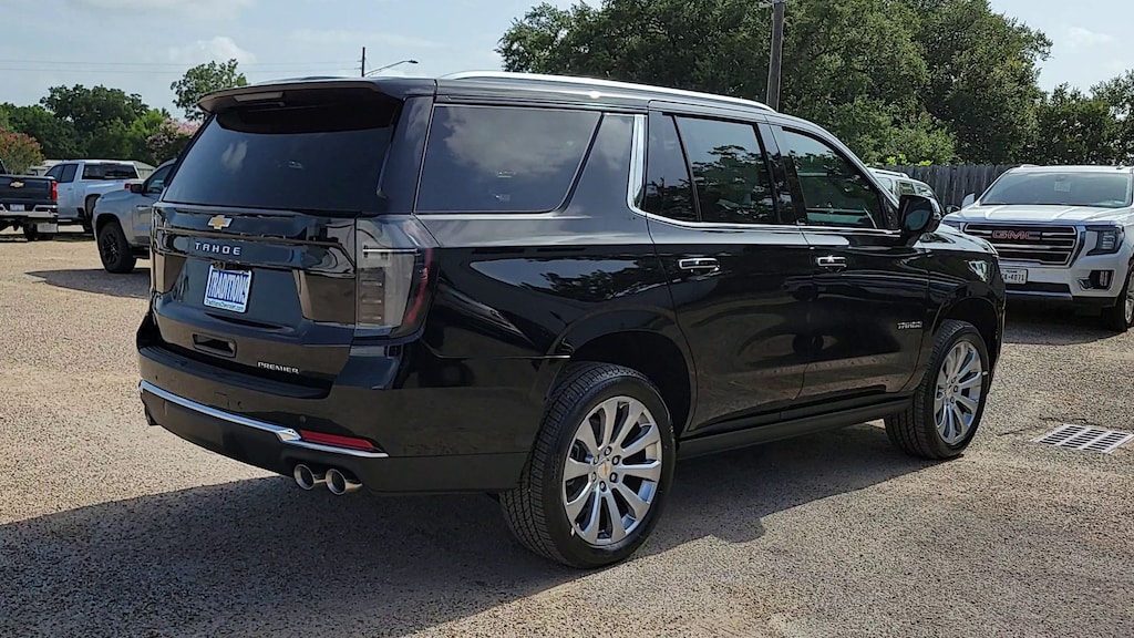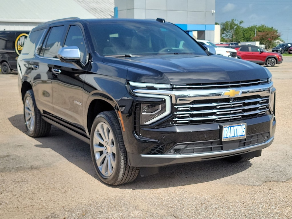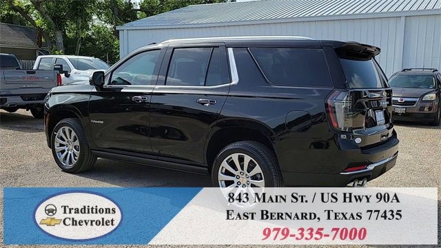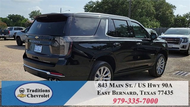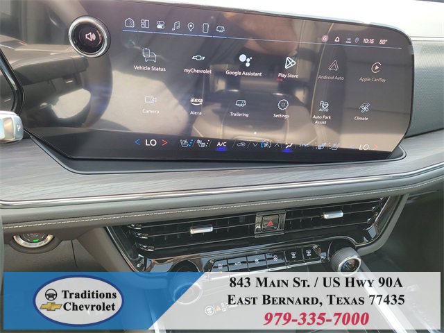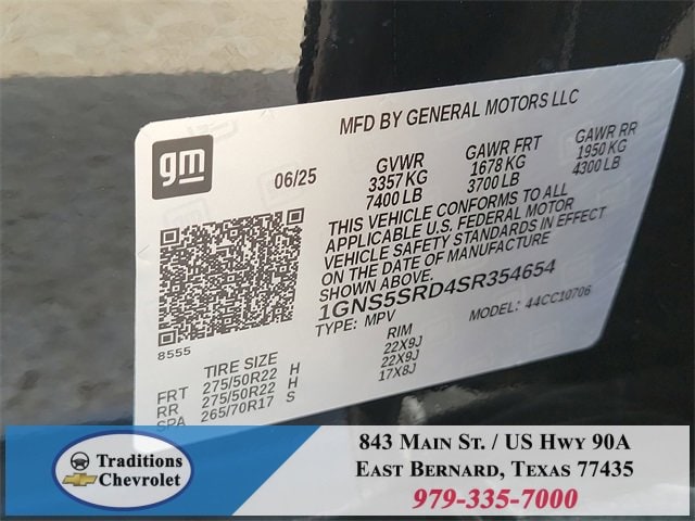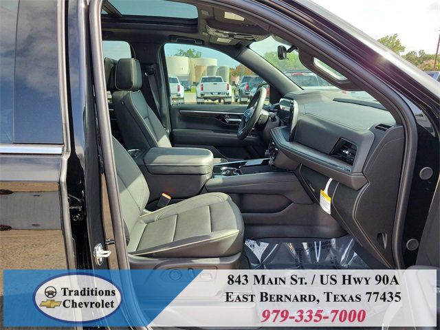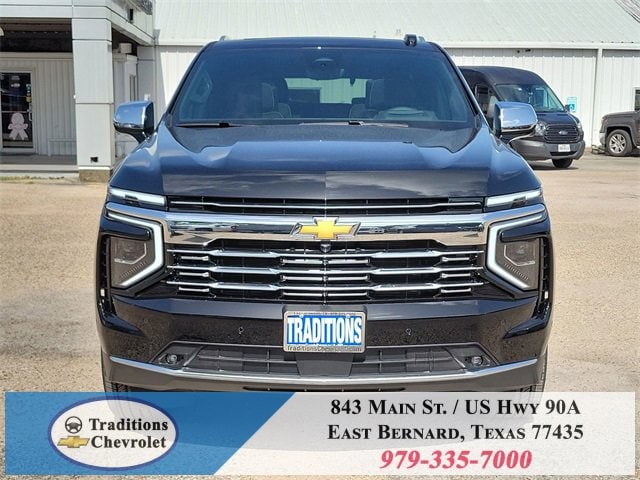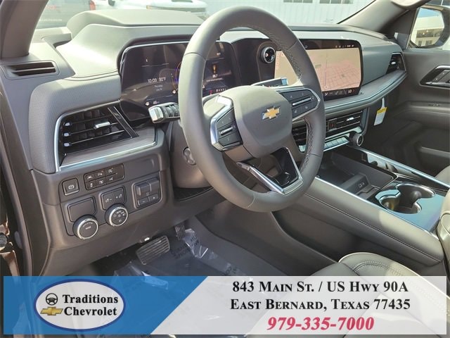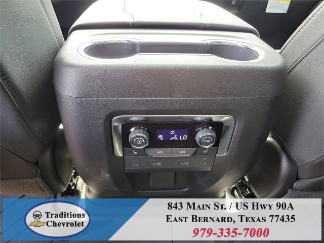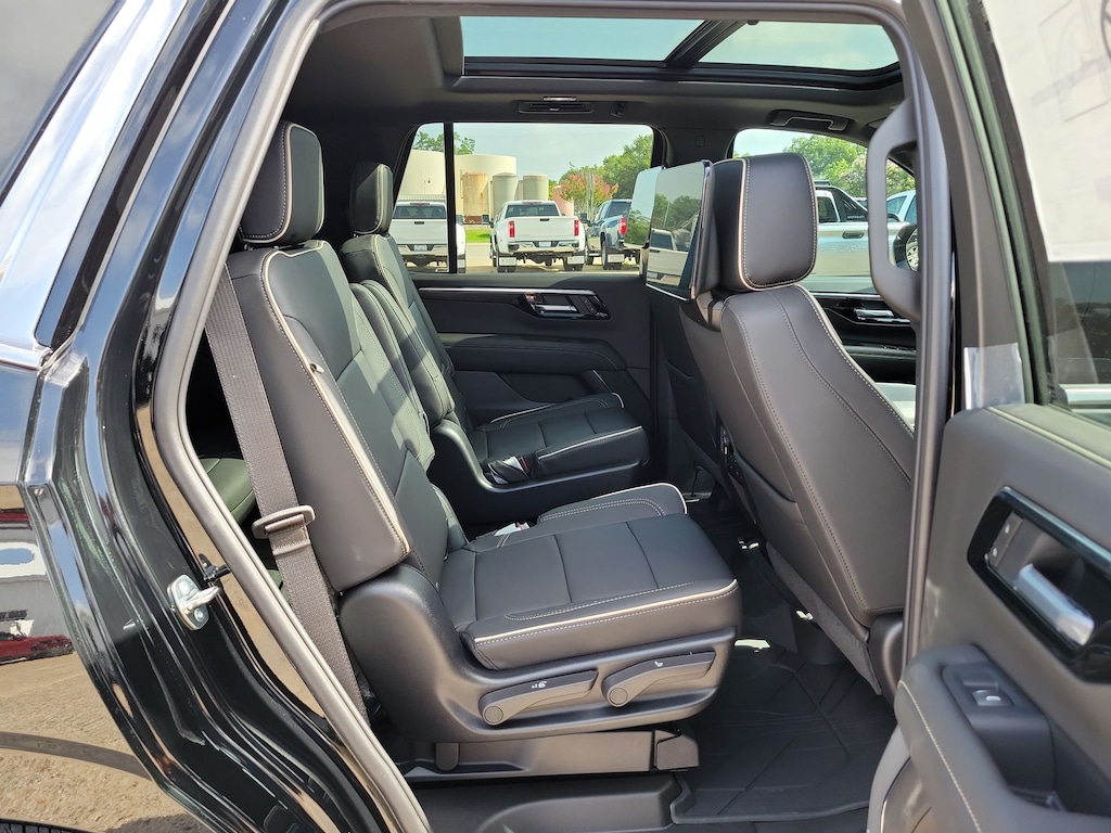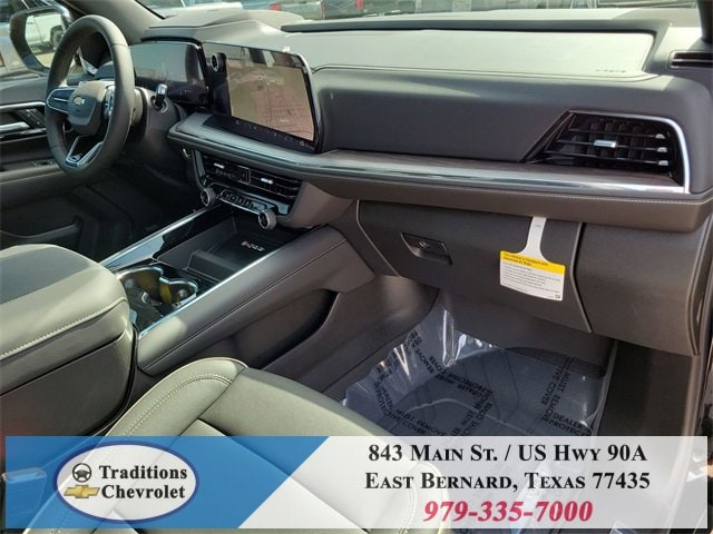 Advanced Security Package (Glass Breakage Sensor, Theft-Deterrent Alarm System, Vehicle Inclination Sensor, and Vehicle Interior Movement Sensor), Advanced Trailering Package (Smart Trailer Integration Indicator), Preferred Equipment Group 1LZ (3-Spoke Wrapped Steering Wheel, 3rd Row 60/40 Power-Folding Split-Bench Seat, Auto-Dimming Inside Rear-View Mirror, Chrome Mirror Caps, Color-Keyed Carpeting Floor Covering, Dual Exhaust System, Floor Console, Front LED Fog Lamps, Heated 2nd Row Outboard Seats, Heated Steering Wheel, LED Tail Lamps, Memory Settings, Outside Heated Power-Adjustable Mirrors, Power Release 2nd Row Bucket Seats, Rear Power Liftgate, Remote Start, Universal Home Remote, Wireless Phone Charging, 20 x 9 Polished Aluminum Wheels, Front Bucket Seats, and Magnetic Ride Control Suspension), License Plate Front Mounting Package, Max Trailering Package (Integrated Trailer Brake Controller), Technology & Entertainment Package (Dual-Pane Power Panoramic Sunroof and Rear Seat Media System), Technology Package (15 Diagonal Multi-Color Head-Up Display and AutoSense Hands-Free Power Liftgate), Jet Black w/Perforated Leather Seat Trim, Navigation system: Google built-in compatibility (select service plan required, terms and limitations apply), 10 Speakers, 3.23 Rear Axle Ratio, 3rd row seats: split-bench, 4-Way Power Driver Lumbar Seat Adjuster, 4-Way Power Front Passenger Lumbar Seat Adjuster, 4-Wheel Disc Brakes, 8-Way Power Driver Seat Adjuster, 8-Way Power Front Passenger Seat Adjuster, ABS brakes, Adaptive suspension, Air Conditioning, Alloy wheels, AM/FM radio: SiriusXM with 360L, Apple CarPlay/Android Auto, Auto High-beam Headlights, Auto-dimming door mirrors, Auto-dimming Rear-View mirror, Auto-leveling suspension, Automatic temperature control, Brake assist, Bumpers: body-color, Compass, Delay-off headlights, Driver door bin, Driver vanity mirror, Dual front impact airbags, Dual front side impact airbags, Electronic Stability Control, Emergency communication system: OnStar and Chevrolet connected services capable, Exterior Parking Camera Rear, Extra Capacity Cooling System, Four wheel independent suspension, Front anti-roll bar, Front Center Armrest, Front dual zone A/C, Front fog lights, Front reading lights, Fully automatic headlights, Garage door transmitter, Heated door mirrors, Heated front seats, Heated rear seats, Heated steering wheel, Illuminated entry, Low tire pressure warning, Memory seat, Occupant sensing airbag, Outside temperature display, Overhead airbag, Overhead console, Panic alarm, Passenger door bin, Passenger vanity mirror, Perforated Leather Seat Trim, Power door mirrors, Power driver seat, Power Liftgate, Power passenger seat, Power steering, Power windows, Power-Retractable Assist Steps, Premium audio system: Chevrolet Infotainment 3 Premium, Radio data system, Radio: 17.7 Diagonal Advanced Color LCD Display, Rain sensing wipers, Rear air conditioning, Rear anti-roll bar, Rear reading lights, Rear window defroster, Rear window wiper, Remote keyless entry, Security system, Speed con