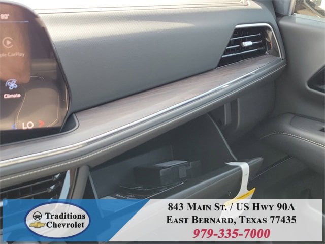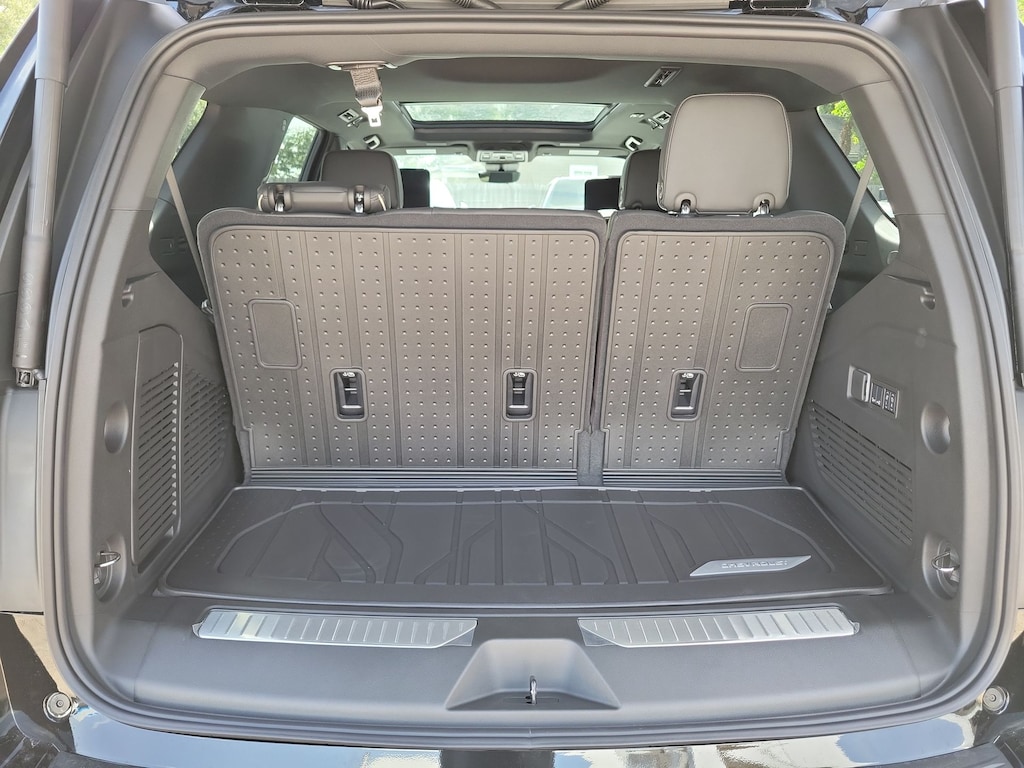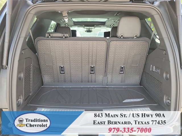 Jet Black w/Perforated Leather Seat Trim, 3-Spoke Wrapped Steering Wheel, 3rd Row 60/40 Power-Folding Split-Bench Seat, Advanced Security Package, Advanced Trailering Package, Auto-Dimming Inside Rear-View Mirror, Chrome Mirror Caps, Color-Keyed Carpeting Floor Covering, Dual Exhaust System, Floor Console, Front LED Fog Lamps, Glass Breakage Sensor, Heated 2nd Row Outboard Seats, Heated Steering Wheel, LED Tail Lamps, Memory Settings, Navigation system: Google built-in compatibility (select service plan required, terms and limitations apply), Outside Heated Power-Adjustable Mirrors, Power Release 2nd Row Bucket Seats, Preferred Equipment Group 1LZ, Rear Power Liftgate, Remote Start, Smart Trailer Integration Indicator, Theft-Deterrent Alarm System, Universal Home Remote, Vehicle Inclination Sensor, Vehicle Interior Movement Sensor, Wireless Phone Charging.