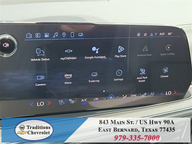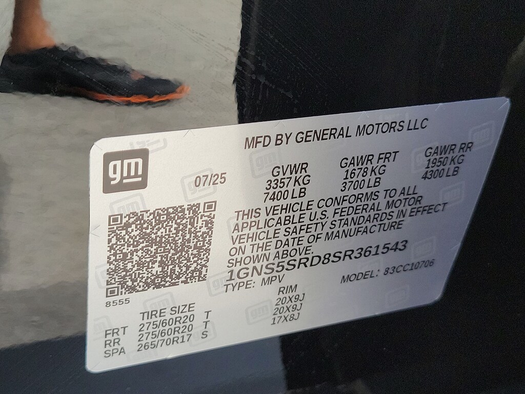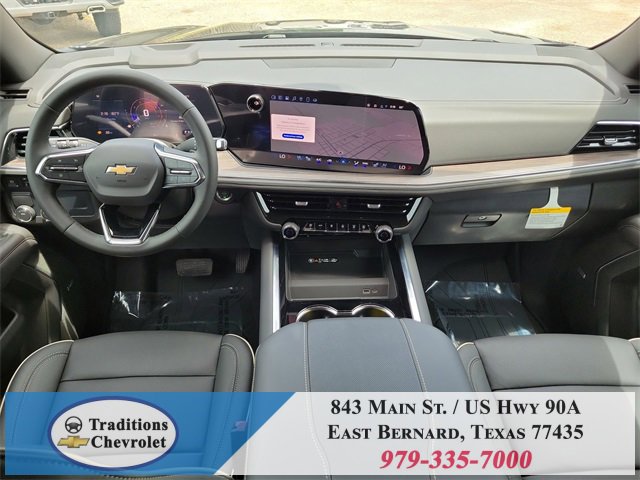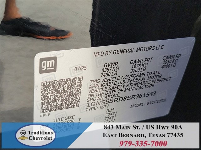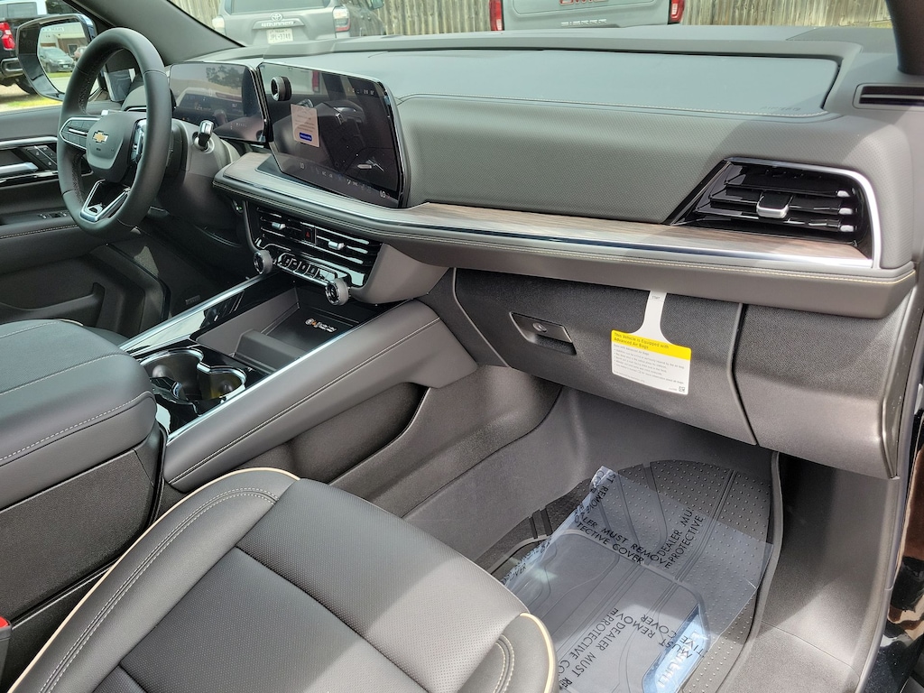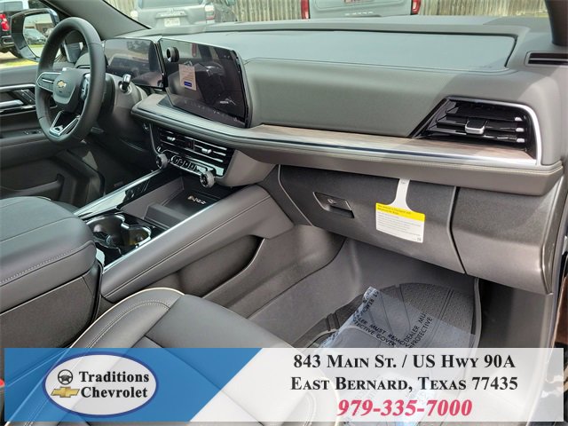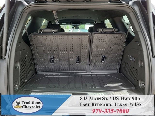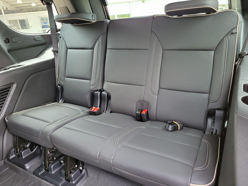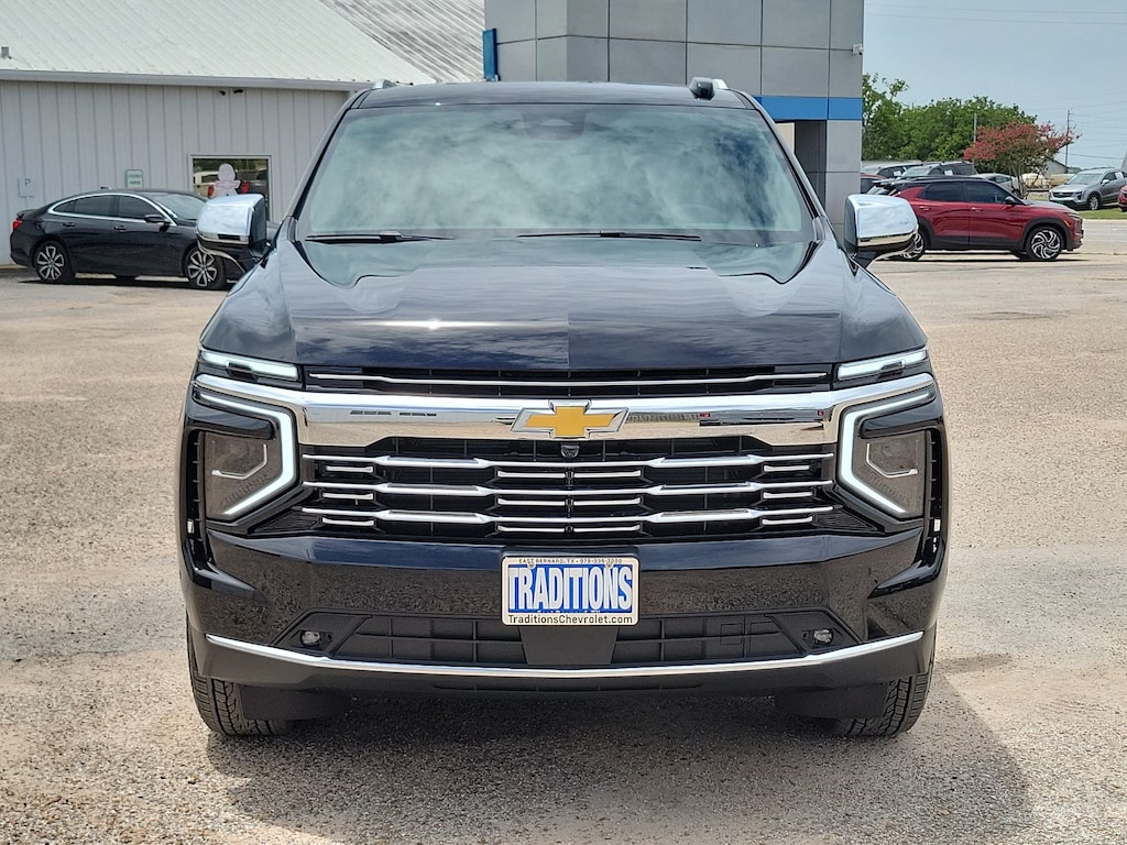 Preferred Equipment Group 1LZ (3-Spoke Wrapped Steering Wheel, 3rd Row 60/40 Power-Folding Split-Bench Seat, Auto-Dimming Inside Rear-View Mirror, Chrome Mirror Caps, Color-Keyed Carpeting Floor Covering, Dual Exhaust System, Floor Console, Front LED Fog Lamps, Heated 2nd Row Outboard Seats, Heated Steering Wheel, LED Tail Lamps, Memory Settings, Outside Heated Power-Adjustable Mirrors, Power Release 2nd Row Bucket Seats, Rear Power Liftgate, Remote Start, Universal Home Remote, Wireless Phone Charging, 20 x 9 Polished Aluminum Wheels, Front Bucket Seats, and Magnetic Ride Control Suspension), License Plate Front Mounting Package, Jet Black w/Perforated Leather Seat Trim, 10 Speakers, 3.23 Rear Axle Ratio, 3rd row seats: split-bench, 4-Way Power Driver Lumbar Seat Adjuster, 4-Way Power Front Passenger Lumbar Seat Adjuster, 4-Wheel Disc Brakes, 8-Way Power Driver Seat Adjuster, 8-Way Power Front Passenger Seat Adjuster, ABS brakes, Adaptive suspension, Air Conditioning, Alloy wheels, AM/FM radio: SiriusXM with 360L, Apple CarPlay/Android Auto, Auto High-beam Headlights, Auto-dimming door mirrors, Auto-dimming Rear-View mirror, Auto-leveling suspension, Automatic temperature control, Brake assist, Bumpers: body-color, Compass, Delay-off headlights, Driver door bin, Driver vanity mirror, Dual front impact airbags, Dual front side impact airbags, Electronic Stability Control, Emergency communication system: OnStar and Chevrolet connected services capable, Exterior Parking Camera Rear, Four wheel independent suspension, Front anti-roll bar, Front Center Armrest, Front dual zone A/C, Front fog lights, Front reading lights, Fully automatic headlights, Garage door transmitter, Heated door mirrors, Heated front seats, Heated rear seats, Heated steering wheel, Illuminated entry, Low tire pressure warning, Memory seat, Navigation system: Google built-in compatibility (select service plan required, terms and limitations apply), Occupant sensing airbag, Outside temperature display, Overhead airbag, Overhead console, Panic alarm, Passenger door bin, Passenger vanity mirror, Perforated Leather Seat Trim, Power door mirrors, Power driver seat, Power Liftgate, Power passenger seat, Power steering, Power windows, Premium audio system: Chevrolet Infotainment 3 Premium, Radio data system, Radio: 17.7 Diagonal Advanced Color LCD Display, Rain sensing wipers, Rear air conditioning, Rear anti-roll bar, Rear reading lights, Rear window defroster, Rear window wiper, Remote keyless entry, Security system, Speed control, Speed-sensing steering, Split folding rear seat, Spoiler, Steering wheel memory, Steering wheel mounted audio controls, Tachometer, Telescoping steering wheel, Tilt steering wheel, Traction control, Trip computer, Turn signal indicator mirrors, Variably intermittent wipers, Ventilated front seats, and Voltmeter. Tax, title, license and dealer fees (unless itemized above) are extra. Not available with special finance or lease offers. See Dealer for Details. Price includes: $1000 - Customer Cash. Exp. 01/02/2026