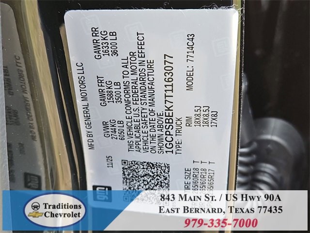 Preferred Equipment Group 2WT (Automatic Emergency Braking, Chevy Safety Assist, Following Distance Indicator, Forward Collision Alert, Front Pedestrian and Bicyclist Braking, IntelliBeam Automatic High Beam on/Off, and Lane Keep Assist with Lane Departure Warning), WT Convenience Package II (4-Spoke Wrapped Steering Wheel, 8-Way Power Driver Seat Adjuster, EZ-Lift and Lower Tailgate, Power Driver Lumbar Control Seat Adjuster, StowFlex Tailgate Storage Compartment, and Tailgate Keyed Cylinder Lock), WT Custom Package (Black Nameplates and Wheels: 18 x 8.5 Black High Gloss Aluminum), 3.42 Rear Axle Ratio, 4-Way Manual Passenger Seat Adjuster, 4-Wheel Disc Brakes, 6 Speakers, 6-Speaker Audio System Feature, 6-Way Manual Driver Seat Adjuster, ABS brakes, Air Conditioning, AM/FM radio: SiriusXM with 360L, Apple CarPlay/Android Auto, Auto High-beam Headlights, Black Bowtie Emblem, Black Spray-on Bedliner, Brake assist, Cloth Seat Trim, Delay-off headlights, Driver door bin, Driver vanity mirror, Dual front impact airbags, Dual front side impact airbags, Electronic Stability Control, Emergency communication system: OnStar, Front anti-roll bar, Front Bucket Seats, Front Center Armrest, Front License Plate Kit, Front wheel independent suspension, Heated door mirrors, Low tire pressure warning, Navigation System, Occupant sensing airbag, Overhead airbag, Panic alarm, Passenger door bin, Passenger vanity mirror, Power door mirrors, Power steering, Power windows, Radio data system, Radio: 11.3 Diagonal Advanced Color LCD Display, Rear step bumper, Rear window defroster, Remote keyless entry, Security system, SiriusXM with 360L Trial Subscription, Speed control, Speed-sensing steering, Split folding rear seat, Steering Wheel Mounted Audio Controls, Steering wheel mounted audio controls, Tachometer, Tilt steering wheel, Traction control, Trip computer, Variably intermittent wipers, Wheels: 17 x 8 Ultra Silver Metallic Steel, and Wireless Phone Projection. Tax, title, license and dealer fees (unless itemized above) are extra. Not available with special finance or lease offers. See Dealer for Details. Price includes: $1000 - Customer Cash. Exp. 02/02/2026
