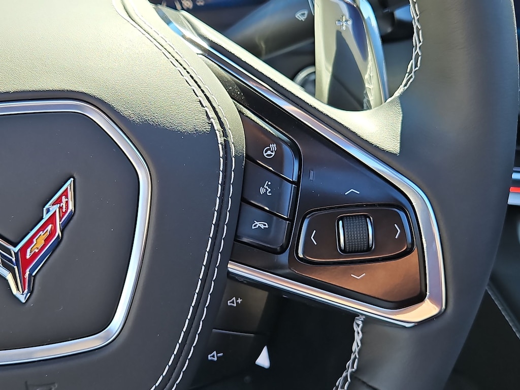 Memory Driver & Passenger Convenience Package, 14 Speakers, 2 Cargo Nets, 4-Wheel Antilock 4-Wheel Disc Carbon Ceramic Brakes, 4-Wheel Disc Brakes, 8-Way Power Driver Seat Adjuster, 8-Way Power Passenger Seat Adjuster, ABS brakes, Adaptive suspension, Air Conditioning, Alloy wheels, AM/FM radio: SiriusXM, Auto High-beam Headlights, Auto-dimming door mirrors, Auto-dimming Rear-View mirror, Automatic Leveling System Headlamp Control, Automatic temperature control, Blue-Painted Calipers, Bose Performance Series Sound System w/14 Speakers, Brake assist, Bumpers: body-color, Carbon-Flash Painted Carbon Fiber Ground Effects, Compass, Convertible HardTop, Convertible roof lining, Dark Gray Metallic-Painted Calipers, Delay-off headlights, Driver door bin, Driver Power Bolster Seat Adjuster, Driver vanity mirror, Dual front impact airbags, Dual front side impact airbags, Electrical Theft Deterrent System, Electronic Stability Control, Emergency communication system: OnStar and Chevrolet connected services capable, Exterior Parking Camera Rear, Four wheel independent suspension, Front anti-roll bar, Front Bucket Seats, Front Center Armrest, Front dual zone A/C, Front Lift Adjustable Height w/Memory, Front reading lights, Fully automatic headlights, Garage door transmitter, Glass rear window, GT1 Bucket Seats, HD Front & Rear Vision Cameras, Heads-Up Display, Heated & Vented Driver & Passenger Seats, Heated door mirrors, Heated front seats, Heated Steering Wheel, Heated steering wheel, Illuminated entry, Integrated roll-over protection, Leather Shift Knob, Leather steering wheel, Low tire pressure warning, Memory seat, Mulan Lthr Seating Surfaces w/Perforated Inserts, Navigation System, Occupant sensing airbag, Outside temperature display, Overhead console, Panic alarm, Passenger door bin, Passenger Power Bolster Seat Adjuster, Passenger vanity mirror, Performance Data & Video Recorder, Power convertible roof, Power door mirrors, Power Driver Lumbar Control Seat Adjuster, Power driver seat, Power Passenger Lumbar Control Seat Adjuster, Power passenger seat, Power steering, Power windows, Power-Adjustable Outside Heated Mirrors, Premium audio system: Chevrolet Infotainment 3 Premium, Radio data system, Radio: Infotainment System w/Google Built-In, Rear anti-roll bar, Rear Cross Traffic Alert, Rear window defroster, Remote keyless entry, Security system, Side Blind Zone Alert, Speed control, Speed-sensing steering, Spoiler, Sport steering wheel, Steering wheel memory, Steering wheel mounted audio controls, Tachometer, Telescoping steering wheel, Tilt steering wheel, Traction control, Trip computer, Turn signal indicator mirrors, Universal Home Remote, Variably intermittent wipers, Vehicle Inclination Theft Deterrent Sensor, Vehicle Interior Movement Theft Deterrent Sensor, Ventilated front seats, Voltmeter, Wheels: 20 x 10 Fr/21 x 13 Rr Black, Wheels: 20 x 10 Fr/21 x 13 Rr Titanium Satin, and Wireless Phone Charging.