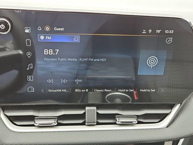 Preferred Equipment Group 1LT, 4-Wheel Disc Brakes, 5.81 Final Drive Axle Ratio, 6 Speakers, ABS brakes, Air Conditioning, Alloy wheels, AM/FM radio: SiriusXM, Auto High-beam Headlights, Brake assist, Bumpers: body-color, Cloth Seat Trim, Compass, Delay-off headlights, Driver 6-Way Manual Seat Adjuster, Driver door bin, Driver vanity mirror, Dual front impact airbags, Dual front side impact airbags, Electronic Stability Control, Emergency communication system: OnStar and Chevrolet connected services capable, Four wheel independent suspension, Front anti-roll bar, Front Bucket Seats, Front Center Armrest, Front Passenger 4-Way Manual Seat Adjuster, Front reading lights, Fully automatic headlights, Heated door mirrors, Heated Driver and Front Passenger Seats, Heated front seats, Heated steering wheel, Illuminated entry, Low tire pressure warning, Navigation System, Occupant sensing airbag, Outside temperature display, Overhead airbag, Overhead console, Panic alarm, Passenger door bin, Passenger vanity mirror, Power door mirrors, Power steering, Power windows, Premium audio system: Chevrolet Infotainment 3, Radio data system, Radio: 11.3 Diagonal Advanced Color LCD Display, Rear anti-roll bar, Rear reading lights, Rear seat center armrest, Rear window defroster, Rear window wiper, Remote keyless entry, Security system, SiriusXM with 360L Trial Subscription, Speed control, Speed-sensing steering, Split folding rear seat, Spoiler, Steering wheel mounted audio controls, Tachometer, Telescoping steering wheel, Tilt steering wheel, Traction control, Trip computer, Variably intermittent wipers, and Wheels: 17 Grazen Metallic Machined-Face Aluminum.