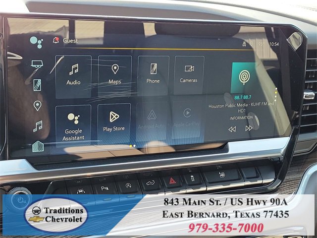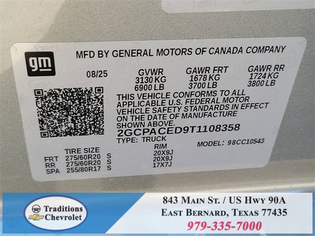Convenience Package (120-Volt Bed Mounted Power Outlet, 120-Volt Interior Power Outlet, Dual-Zone Automatic Climate Control, Heated Steering Wheel, LED Cargo Area Lighting, Manual Tilt/Telescoping Steering Column, and Wrapped Steering Wheel), Convenience Package II (Universal Home Remote), High Capacity Suspension Package, Leather Package (Leather-Appointed Front Seat Trim), Preferred Equipment Group 1LT (12.3 Multicolor Reconfigurable Digital Display, 40/20/40 Front Split-Bench Seat, All-Star Edition, Auto-Locking Rear Differential, Bluetooth® For Phone, Chrome Mirror Caps, Cloth Seat Trim, Color-Keyed Carpeting Floor Covering, Deep-Tinted Glass, Electronic Cruise Control, Front Rubberized Vinyl Floor Mats, HD Rear Vision Camera, Heated Power-Adjustable Outside Mirrors, Integrated Trailer Brake Controller, OnStar Services Capable, Rear Rubberized-Vinyl Floor Mats, Standard Tailgate, Steering Wheel Audio Controls, Teen Driver, Tire Pressure Monitoring System, Wheels: 17 x 8 Bright Silver Painted Aluminum, and Wi-Fi Hot Spot Capable), Protection Package (Rear Wheelhouse Liners), Remote Start Package (Electric Rear-Window Defogger and Remote Vehicle Starter System), Safety Package (Front Frame-Mounted Black Recovery Hooks, HD Surround Vision, Perimeter Lighting, Rear Cross Traffic Braking, Rear Pedestrian Alert, Trailer Camera Provisions, and Trailer Side Blind Zone Alert), Standard Suspension Package, Texas Edition Plus (Texas Edition Badging and Wheels: 20 x 9 Painted Aluminum), Trailering Package (Hitch Guidance), 10-Speed Automatic, Gideon/Very Dark Atmosphere Leather, 170 Amp Alternator, 2 USB Data Ports, 220 Amp Alternator, 3.23 Rear Axle Ratio, 4-Wheel Disc Brakes, 6 Speakers, 6-Speaker Audio System, ABS brakes, Air Conditioning, Alloy wheels, AM/FM radio: SiriusXM with 360L, Apple CarPlay/Android Auto, Auto High-beam Headlights, Automatic Emergency Braking, Automatic temperature control, Auxiliary External Transmission Oil Cooler, Brake assist, Bumpers: chrome, Compass, Delay-off headlights, Driver door bin, Driver vanity mirror, Dual front impact airbags, Dual front side impact airbags, Electronic Stability Control, Electronic Transmission Range Selector Shifter, Emergency communication system: OnStar, External Engine Oil Cooler, Floor Mounted Center Console, Following Distance Indicator, Forward Collision Alert, Front anti-roll bar, Front Bucket Seats, Front Center Armrest w/Storage, Front dual zone A/C, Front License Plate Kit, Front Pedestrian Braking, Front reading lights, Front wheel independent suspension, Fully automatic headlights, Heated door mirrors, Heated front seats, Heated steering wheel, Illuminated entry, Low tire pressure warning, Occupant sensing airbag, Outside temperature display, Overhead airbag, Overhead console, Panic alarm, Passenger door bin, Passenger vanity mirror, Power door mirrors, Power driver seat, Power steering, Power windows, Premium audio system: Chevrolet Infotainment 3 Premium, Radio data system, Radio: Chevrolet Infotainment 3 Premium System, Rear reading lights, Rear step bumper, Rear window defroster, Remote keyless entry, Security system, Speed control, Speed-sensing steering, Split folding rear seat, Steering wheel mounted audio controls, Tachometer, Telescoping steering wheel, Tilt steering wheel, Traction control, Trip computer, Variably intermittent wipers, Voltmeter, and Wireless Charging. Tax, title, license and dealer fees (unless itemized above) are extra. Not available with special finance or lease offers. See Dealer for Details. Price includes: $1500 - Bonus Cash. Exp. 01/02/2026 $3250 - Customer Cash. Exp. 01/02/2026