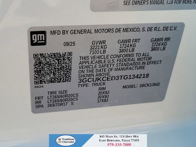 10-Speed Automatic, 4WD, Black Cloth.Custom Convenience Package (Electric Rear-Window Defogger, EZ Lift Power Lock & Release Tailgate, LED Cargo Area Lighting, Remote Vehicle Starter System, and Theft Deterrent System (Unauthorized Entry)), Preferred Equipment Group 2CX (10-Way Power Driver Seat w/Lumbar, 120-Volt Bed Mounted Power Outlet, 120-Volt Interior Power Outlet, 3.5 Monochromatic Display Driver Info Center, Auto-Locking Rear Differential, Bluetooth® For Phone, Color-Keyed Carpeting Floor Covering, Deep-Tinted Glass, Dual Rear USB Ports (Charge Only), Electronic Cruise Control, Front Rubberized Vinyl Floor Mats, HD Rear Vision Camera, Manual Tilt Wheel Steering Column, OnStar Services Capable, Performance Red Recovery Hooks, Power Front Windows w/Driver Express Up/Down, Power Front Windows w/Passenger Express Down, Power Rear Windows w/Express Down, Rear 60/40 Folding Bench Seat (Folds Up), Rear Rubberized-Vinyl Floor Mats, Remote Keyless Entry, SiriusXM Trial Subscription, Standard Tailgate, Teen Driver, Tire Pressure Monitoring System, and Wi-Fi Hot Spot Capable), Suspension Package (Heavy-Duty Air Filter and Hill Descent Control), Trailering Package (Hitch Guidance), 10-Speed Automatic, 4WD, Black Cloth, 170 Amp Alternator, 220 Amp Alternator, 4-Wheel Disc Brakes, 40/20/40 Front Split-Bench Seat, 6 Speakers, 6-Speaker Audio System, ABS brakes, Air Conditioning, Alloy wheels, AM/FM radio: SiriusXM, Apple CarPlay/Android Auto, Auto High-beam Headlights, Automatic Emergency Braking, Auxiliary External Transmission Oil Cooler, Brake assist, Cloth Seat Trim, Compass, Delay-off headlights, Driver door bin, Driver vanity mirror, Dual Exhaust w/Polished Outlets, Dual front impact airbags, Dual front side impact airbags, Electronic Stability Control, Emergency communication system: OnStar, External Engine Oil Cooler, Following Distance Indicator, Forward Collision Alert, Front anti-roll bar, Front Center Armrest w/Storage, Front License Plate Kit, Front Pedestrian Braking, Front reading lights, Front wheel independent suspension, Fully automatic headlights, Heated door mirrors, Illuminated entry, IntelliBeam Automatic High Beam On/Off, Lane Keep Assist w/Lane Departure Warning, Low tire pressure warning, Occupant sensing airbag, Off-Road Assist Steps (LPO), Outside temperature display, Overhead airbag, Overhead console, Panic alarm, Passenger door bin, Passenger vanity mirror, Power door mirrors, Power driver seat, Power steering, Power windows, Premium audio system: Chevrolet Infotainment 3, Radio data system, Radio: Chevrolet Infotainment 3 System, Rear reading lights, Rear step bumper, Rear window defroster, Remote keyless entry, Security system, Single Outlet Exhaust, Speed control, Speed-sensing steering, Split folding rear seat, Tachometer, Tilt steering wheel, Traction control, Trip computer, Variably intermittent wipers, Voltmeter, Wheels: 18 x 8.5 Black Painted Aluminum, and Wheels: 20 x 9 High Gloss Black Painted Alum. Tax, title, license and dealer fees (unless itemized above) are extra. Not available with special finance or lease offers. See Dealer for Details. Price includes: $1500 - Bonus Cash. Exp. 03/02/2026 $3250 - Customer Cash. Exp. 03/02/2026