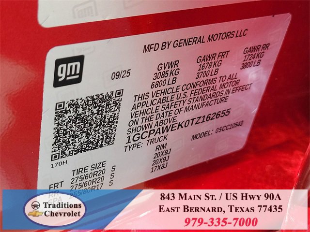 Convenience Package (Dual-Zone Automatic Climate Control, Remote Vehicle Starter System, 10-Way Power Driver Seat with Lumbar, 120-Volt Bed Mounted Power Outlet, 120-Volt Interior Power Outlet, Dual Rear USB Ports (charge Only), Electric Rear-Window Defogger, Heated Driver and Front Outboard Passenger Seats, Heated Steering Wheel, Keyless Open and Start, LED Cargo Area Lighting, Manual Tilt/Telescoping Steering Column, Theft Deterrent System (unauthorized Entry), and Wrapped Steering Wheel), Trailering Package (Hitch Guidance), Standard Suspension Package, 8-Speed Automatic, Black Cloth, ABS brakes, Alloy wheels, Compass, Electronic Stability Control, Front dual zone A/C, Front Frame-Mounted Black Recovery Hooks, Heated door mirrors, Heated front seats, Heated Power-Adjustable Outside Mirrors, Illuminated entry, Integrated Trailer Brake Controller, Low tire pressure warning, Remote keyless entry, Tire Pressure Monitoring System, Traction control, 12.3 Multicolor Reconfigurable Digital Display, 220 Amp Alternator, 4-Wheel Disc Brakes, 40/20/40 Front Split-Bench Seat, 6 Speakers, 6-Speaker Audio System, Air Conditioning, All-Star Edition, AM/FM radio: SiriusXM with 360L, Apple CarPlay/Android Auto, Auto High-beam Headlights, Auto-Locking Rear Differential, Automatic Emergency Braking, Automatic temperature control, Bluetooth® For Phone, Brake assist, Bumpers: body-color, Cloth Seat Trim, Color-Keyed Carpeting Floor Covering, Deep-Tinted Glass, Delay-off headlights, Driver door bin, Driver vanity mirror, Dual front impact airbags, Dual front side impact airbags, Electronic Cruise Control, Emergency communication system: OnStar, EZ Lift Power Lock and Release Tailgate, Following Distance Indicator, Forward Collision Alert, Front anti-roll bar, Front Center Armrest w/Storage, Front fog lights, Front LED Fog Lamps, Front Pedestrian Braking, Front reading lights, Front Rubberized Vinyl Floor Mats, Front wheel independent suspension, Fully automatic headlights, HD Rear Vision Camera, Heated steering wheel, High Gloss Black Mirror Caps, Inside Rearview Mirror with Tilt, IntelliBeam Automatic High Beam on/Off, Lane Keep Assist with Lane Departure Warning, Occupant sensing airbag, OnStar Services Capable, Outside temperature display, Overhead airbag, Overhead console, Panic alarm, Passenger door bin, Passenger vanity mirror, Power door mirrors, Power driver seat, Power Front Windows with Driver Express Up/Down, Power Front Windows with Passenger Express Down, Power Rear Windows with Express Down, Power steering, Power windows, Premium audio system: Chevrolet Infotainment 3 Premium, Radio data system, Radio: Chevrolet Infotainment 3 Premium System, Rear 60/40 Folding Bench Seat (folds Up), Rear reading lights, Rear Rubberized-Vinyl Floor Mats, Rear step bumper, Rear window defroster, Security system, Single Outlet Exhaust, SiriusXM with 360L Trial Subscription, Speed control, Speed-sensing steering, Split folding rear seat, Standard Tailgate, Steering Wheel Audio Controls, Steering wheel mounted audio controls, Tachometer, Teen Driver, Telescoping steering wheel, Tilt steering wheel, Trip computer, Variably intermittent wipers, Voltmeter, Wheels: 18 x 8.5 Bright Silver Painted Aluminum, and Wi-Fi Hot Tax, title, license and dealer fees (unless itemized above) are extra. Not available with special finance or lease offers. See Dealer for Details. Price includes: $1000 - Bonus Cash. Exp.