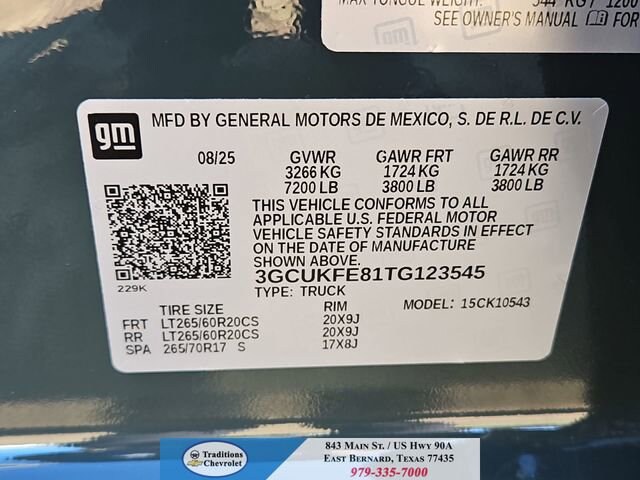 10-Speed Automatic, 4WD, Black Leather.Convenience Package (10-Way Power Driver Seat w/Lumbar, 120-Volt Bed Mounted Power Outlet, 120-Volt Interior Power Outlet, Dual Rear USB Ports (Charge Only), Dual-Zone Automatic Climate Control, Electric Rear-Window Defogger, Heated Driver & Front Outboard Passenger Seats, Heated Steering Wheel, Keyless Open & Start, LED Cargo Area Lighting, Manual Tilt/Telescoping Steering Column, Remote Vehicle Starter System, Theft Deterrent System (Unauthorized Entry), and Wrapped Steering Wheel), Convenience Package II (Hitch Guidance w/Hitch View, In-Vehicle Trailering System App, Power Sliding Rear Window w/Rear Defogger, Premium Bose 7-Speaker Sound System, and Universal Home Remote), Leather Package (Leather-Appointed Front Seat Trim), Preferred Equipment Group 2LT (12.3 Multicolor Reconfigurable Digital Display, 6-Speaker Audio System, All-Weather Floor Liner (LPO) (AAK), Auto-Locking Rear Differential, Bluetooth® For Phone, Color-Keyed Carpeting Floor Covering, Deep-Tinted Glass, Electronic Cruise Control, EZ Lift Power Lock & Release Tailgate, Front LED Fog Lamps, HD Rear Vision Camera, Heated Power-Adjustable Outside Mirrors, High Gloss Black Mirror Caps, Inside Rear-View Mirror w/Tilt, Integrated Trailer Brake Controller, OnStar Services Capable, Performance Red Recovery Hooks, Power Front Windows w/Driver Express Up/Down, Power Front Windows w/Passenger Express Down, Power Rear Windows w/Express Down, Rear 60/40 Folding Bench Seat (Folds Up), SiriusXM w/360L Trial Subscription, Standard Tailgate, Steering Wheel Audio Controls, Teen Driver, Tire Pressure Monitoring System, and Wi-Fi Hot Spot Capable), Protection Package (Chevytec Spray-On Black Bedliner and Rear Wheelhouse Liners), Suspension Package (Heavy-Duty Air Filter and Hill Descent Control), Trailering Package (Hitch Guidance), Up-Level Rear Seat w/Storage Package, 10-Speed Automatic, 4WD, Black Leather, 2 USB Data Ports, 220 Amp Alternator, 4-Wheel Disc Brakes, 40/20/40 Front Split-Bench Seat, 6 Speakers, ABS brakes, Air Conditioning, Alloy wheels, AM/FM radio: SiriusXM with 360L, Apple CarPlay/Android Auto, Auto High-beam Headlights, Automatic Emergency Braking, Automatic temperature control, Brake assist, Cloth Seat Trim, Compass, Delay-off headlights, Driver door bin, Driver vanity mirror, Dual Exhaust w/Polished Outlets, Dual front impact airbags, Dual front side impact airbags, Electronic Stability Control, Electronic Transmission Range Selector Shifter, Emergency communication system: OnStar, Engine Block Heater, Floor Mounted Center Console, Following Distance Indicator, Forward Collision Alert, Front anti-roll bar, Front Bucket Seats, Front Center Armrest w/Storage, Front dual zone A/C, Front fog lights, Front License Plate Kit, Front Pedestrian Braking, Front reading lights, Front wheel independent suspension, Fully automatic headlights, Heated door mirrors, Heated front seats, Heated steering wheel, Illuminated entry, IntelliBeam Automatic High Beam On/Off, Lane Keep Assist w/Lane Departure Warning, Low tire pressure warning, Multi-Flex Tailgate, Occupant sensing airbag, Outside temperature display, Overhead airbag, Overhead console, Panic alarm, Passenger door bin, Passenger vanity mirror, Power door mirrors, Power driver seat, Power steering, Power windows, Premium audio system: Chevrolet Infotainment 3 Premium, Radio data system, Radio: Chevrolet Infotainment 3 Premium System, Rear reading lights, Rear step bumper, Rear window defroster, Remote keyless entry, Security system, Single Outlet Exhaust, Speed control, Speed-sensing steering, Split folding rear seat, Steering wheel mounted audio controls, Tachometer, Telescoping steering wheel, Tilt steering wheel, Traction control, Tr Tax, title, license and dealer fees (unless itemized above) are extra. Not available with special finance or lease offers. See Dealer for Details. Price includes: $1750 - Bonus Cash. Exp. 03/02/2026 $2500 - Customer Cash. Exp. 03/02/2