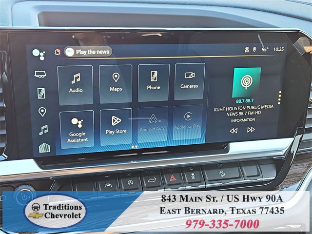 Convenience Package (10-Way Power Driver Seat w/Lumbar, 120-Volt Bed Mounted Power Outlet, 120-Volt Interior Power Outlet, Dual Rear USB Ports (Charge Only), Dual-Zone Automatic Climate Control, Electric Rear-Window Defogger, Heated Driver & Front Outboard Passenger Seats, Heated Steering Wheel, Keyless Open & Start, LED Cargo Area Lighting, Manual Tilt/Telescoping Steering Column, Remote Vehicle Starter System, Theft Deterrent System (Unauthorized Entry), and Wrapped Steering Wheel), Convenience Package II (Hitch Guidance w/Hitch View, In-Vehicle Trailering System App, Power Sliding Rear Window w/Rear Defogger, Premium Bose 7-Speaker Sound System, and Universal Home Remote), Leather Package (Leather-Appointed Front Seat Trim), Preferred Equipment Group 2LT (12.3 Multicolor Reconfigurable Digital Display, 6-Speaker Audio System, All-Weather Floor Liner (LPO) (AAK), Auto-Locking Rear Differential, Bluetooth® For Phone, Color-Keyed Carpeting Floor Covering, Deep-Tinted Glass, Electronic Cruise Control, EZ Lift Power Lock & Release Tailgate, Front LED Fog Lamps, HD Rear Vision Camera, Heated Power-Adjustable Outside Mirrors, High Gloss Black Mirror Caps, Inside Rear-View Mirror w/Tilt, Integrated Trailer Brake Controller, OnStar Services Capable, Performance Red Recovery Hooks, Power Front Windows w/Driver Express Up/Down, Power Front Windows w/Passenger Express Down, Power Rear Windows w/Express Down, Rear 60/40 Folding Bench Seat (Folds Up), SiriusXM w/360L Trial Subscription, Standard Tailgate, Steering Wheel Audio Controls, Teen Driver, Tire Pressure Monitoring System, and Wi-Fi Hot Spot Capable), Protection Package (Chevytec Spray-On Black Bedliner and Rear Wheelhouse Liners), Suspension Package (Heavy-Duty Air Filter and Hill Descent Control), Trailering Package (Hitch Guidance), Up-Level Rear Seat w/Storage Package, 10-Speed Automatic, 4WD, Black Leather, 2 USB Data Ports, 220 Amp Alternator, 4-Wheel Disc Brakes, 40/20/40 Front Split-Bench Seat, 6 Speakers, ABS brakes, Air Conditioning, Alloy wheels, AM/FM radio: SiriusXM with 360L, Apple CarPlay/Android Auto, Auto High-beam Headlights, Automatic Emergency Braking, Automatic temperature control, Brake assist, Cloth Seat Trim, Compass, Delay-off headlights, Driver door bin, Driver vanity mirror, Dual Exhaust w/Polished Outlets, Dual front impact airbags, Dual front side impact airbags, Electronic Stability Control, Electronic Transmission Range Selector Shifter, Emergency communication system: OnStar, Engine Block Heater, Floor Mounted Center Console, Following Distance Indicator, Forward Collision Alert, Front anti-roll bar, Front Bucket Seats, Front Center Armrest w/Storage, Front dual zone A/C, Front fog lights, Front License Plate Kit, Front Pedestrian Braking, Front reading lights, Front wheel independent suspension, Fully automatic headlights, Heated door mirrors, Heated front seats, Heated steering wheel, Illuminated entry, IntelliBeam Automatic High Beam On/Off, Lane Keep Assist w/Lane Departure Warning, Low tire pressure warning, Multi-Flex Tailgate, Occupant sensing airbag, Outside temperature display, Overhead airbag, Overhead console, Panic alarm, Passenger door bin, Passenger vanity mirror, Power door mirrors, Power driver seat, Power steering, Power windows, Premium audio system: Chevrolet Infotainment 3 Premium, Radio data system, Radio: Chevrolet Infotainment 3 Premium System, Rear reading lights, Rear step bumper, Rear window defroster, Remote keyless entry, Security system, Single Outlet Exhaust, Speed control, Speed-sensing steering, Split folding rear seat, Steering wheel mounted audio controls, Tachometer, Telescoping steering wheel, Tilt steering wheel, Traction control, Tr Tax, title, license and dealer fees (unless itemized above) are extra. Not available with special finance or lease offers. See Dealer for Details. Price includes: $1750 - Bonus Cash. Exp