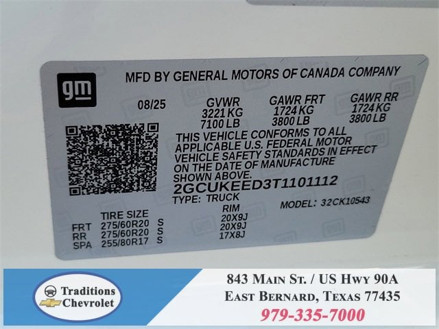 Convenience Package (10-Way Power Driver Seat w/Lumbar, 120-Volt Bed Mounted Power Outlet, 120-Volt Interior Power Outlet, Dual Rear USB Ports (Charge Only), Dual-Zone Automatic Climate Control, Electric Rear-Window Defogger, Heated Driver & Front Outboard Passenger Seats, Heated Steering Wheel, Keyless Open & Start, LED Cargo Area Lighting, Manual Tilt/Telescoping Steering Column, Remote Vehicle Starter System, Theft Deterrent System (Unauthorized Entry), and Wrapped Steering Wheel), Convenience Package II (Hitch Guidance w/Hitch View, In-Vehicle Trailering System App, Power Sliding Rear Window w/Rear Defogger, Premium Bose 7-Speaker Sound System, and Universal Home Remote), High Capacity Suspension Package, Leather Package (Leather-Appointed Front Seat Trim), Preferred Equipment Group 1SP (12.3 Multicolor Reconfigurable Digital Display, 6-Speaker Audio System, All-Star Edition, Auto-Locking Rear Differential, Bluetooth® For Phone, Color-Keyed Carpeting Floor Covering, Deep-Tinted Glass, Electronic Cruise Control, EZ Lift Power Lock & Release Tailgate, Front Frame-Mounted Black Recovery Hooks, Front LED Fog Lamps, Front Rubberized Vinyl Floor Mats, HD Rear Vision Camera, Heated Power-Adjustable Outside Mirrors, High Gloss Black Mirror Caps, Inside Rear-View Mirror w/Tilt, Integrated Trailer Brake Controller, OnStar Services Capable, Power Front Windows w/Driver Express Up/Down, Power Front Windows w/Passenger Express Down, Power Rear Windows w/Express Down, Rear 60/40 Folding Bench Seat (Folds Up), Rear Rubberized-Vinyl Floor Mats, SiriusXM w/360L Trial Subscription, Standard Tailgate, Steering Wheel Audio Controls, Teen Driver, Tire Pressure Monitoring System, and Wi-Fi Hot Spot Capable), Standard Suspension Package, Trailering Package (Hitch Guidance), Up-Level Rear Seat w/Storage Package, 10-Speed Automatic, 4WD, Gideon/Very Dark Atmosphere Leather, 170 Amp Alternator, 2 USB Data Ports, 220 Amp Alternator, 3.23 Rear Axle Ratio, 4-Wheel Disc Brakes, 40/20/40 Front Split-Bench Seat, 6 Speakers, ABS brakes, Air Conditioning, Alloy wheels, AM/FM radio: SiriusXM with 360L, Apple CarPlay/Android Auto, Auto High-beam Headlights, Automatic Emergency Braking, Automatic temperature control, Auxiliary External Transmission Oil Cooler, Brake assist, Bumpers: body-color, Cloth Seat Trim, Compass, Delay-off headlights, Driver door bin, Driver vanity mirror, Dual front impact airbags, Dual front side impact airbags, Electronic Stability Control, Electronic Transmission Range Selector Shifter, Emergency communication system: OnStar, External Engine Oil Cooler, Floor Mounted Center Console, Following Distance Indicator, Forward Collision Alert, Front anti-roll bar, Front Bucket Seats, Front Center Armrest w/Storage, Front dual zone A/C, Front fog lights, Front License Plate Kit, Front Pedestrian Braking, Front reading lights, Front wheel independent suspension, Fully automatic headlights, Heated door mirrors, Heated front seats, Heated steering Tax, title, license and dealer fees (unless itemized above) are extra. Not available with special finance or lease offers. See Dealer for Details. Price includes: $1500 - Bonus Cash. Exp