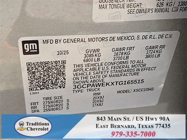 Convenience Package (10-Way Power Driver Seat w/Lumbar, 120-Volt Bed Mounted Power Outlet, 120-Volt Interior Power Outlet, Dual Rear USB Ports (Charge Only), Dual-Zone Automatic Climate Control, Electric Rear-Window Defogger, Heated Driver & Front Outboard Passenger Seats, Heated Steering Wheel, Keyless Open & Start, LED Cargo Area Lighting, Manual Tilt/Telescoping Steering Column, Remote Vehicle Starter System, Theft Deterrent System (Unauthorized Entry), and Wrapped Steering Wheel), High Capacity Suspension Package, RST Select Package (4 Black Round Assist Steps (LPO), All-Weather Floor Liner (LPO), Chevytec Spray-On Black Bedliner, and Wheels: 20 x 9 High Gloss Black Painted Alum), Standard Suspension Package, Trailering Package (Hitch Guidance), 8-Speed Automatic, Jet Black Premium Cloth, 12.3 Multicolor Reconfigurable Digital Display, 220 Amp Alternator, 3.42 Rear Axle Ratio, 4-Wheel Disc Brakes, 40/20/40 Front Split-Bench Seat, 6 Speakers, 6-Speaker Audio System, ABS brakes, Air Conditioning, All-Star Edition, Alloy wheels, AM/FM radio: SiriusXM with 360L, Apple CarPlay/Android Auto, Auto High-beam Headlights, Auto-Locking Rear Differential, Automatic Emergency Braking, Automatic temperature control, Bluetooth® For Phone, Brake assist, Bumpers: body-color, Cloth Seat Trim, Color-Keyed Carpeting Floor Covering, Compass, Deep-Tinted Glass, Delay-off headlights, Driver door bin, Driver vanity mirror, Dual front impact airbags, Dual front side impact airbags, Electronic Cruise Control, Electronic Stability Control, Emergency communication system: OnStar, EZ Lift Power Lock & Release Tailgate, Following Distance Indicator, Forward Collision Alert, Front anti-roll bar, Front Center Armrest w/Storage, Front dual zone A/C, Front fog lights, Front Frame-Mounted Black Recovery Hooks, Front LED Fog Lamps, Front Pedestrian Braking, Front reading lights, Front Rubberized Vinyl Floor Mats, Front wheel independent suspension, Fully automatic headlights, HD Rear Vision Camera, Heated door mirrors, Heated front seats, Heated Power-Adjustable Outside Mirrors, Heated steering wheel, High Gloss Black Mirror Caps, Illuminated entry, Inside Rear-View Mirror w/Tilt, Integrated Trailer Brake Controller, IntelliBeam Automatic High Beam On/Off, Lane Keep Assist w/Lane Departure Warning, Low tire pressure warning, Occupant sensing airbag, OnStar Services Capable, Outside temperature display, Overhead airbag, Overhead console, Panic alarm, Passenger door bin, Passenger vanity mirror, Power door mirrors, Power driver seat, Power Front Windows w/Driver Express Up/Down, Power Front Windows w/Passenger Express Down, Power Rear Windows w/Express Down, Power steering, Power windows, Premium audio system: Chevrolet Infotainment 3 Premium, Radio data system, Radio: Chevrolet Infotainment 3 Premium System, Rear 60/40 Folding Bench Seat (Folds Up), Rear reading lights, Rear Rubberized-Vinyl Floor Mats, Rear step bumper, Rear window defroster, Remote keyless entry, Security system, Single Outlet Exhaust, SiriusXM w/360L Trial Subscription, Speed control, Speed-sensing steering, Split folding rear seat, Standard Tailgate, Steering Wheel Audio Controls, Steering wheel mounted audio controls, Tachometer, Teen Driver, Telescoping steering wheel, Tilt steering wheel, Tire Pressure Monitoring System, Traction control, Trip computer, Variably intermittent wipers, Voltmeter, Wheels: 18 x 8.5 Bright Silver Painted Aluminum, and Wi-Fi Hot Spot Capable. Tax, title, license and dealer fees (unless itemized above) are extra. Not available with special finance or lease offers. See Dealer for Details. Price includes: $1000 - Bonus Cash. Exp. 12/01/2025 $1750 - Customer Cash. Exp. 12/01/2025