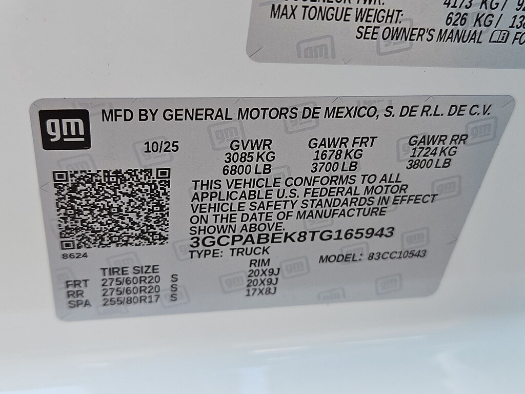 Custom Convenience Package (Electric Rear-Window Defogger, EZ Lift Power Lock and Release Tailgate, LED Cargo Area Lighting, Remote Vehicle Starter System, and Theft Deterrent System (unauthorized Entry)), Custom Value Package, High Capacity Suspension Package, Trailering Package (Hitch Guidance), 8-Speed Automatic, Jet Black Premium Cloth, 10-Way Power Driver Seat with Lumbar, 120-Volt Bed Mounted Power Outlet, 120-Volt Interior Power Outlet, 3.42 Rear Axle Ratio, 3.5 Monochromatic Display Driver Info Center, 4-Wheel Disc Brakes, 40/20/40 Front Split-Bench Seat, 6 Speakers, 6-Speaker Audio System, ABS brakes, Air Conditioning, Alloy wheels, AM/FM radio: SiriusXM, Apple CarPlay/Android Auto, Auto High-beam Headlights, Automatic Emergency Braking, Bluetooth® For Phone, Brake assist, Bumpers: body-color, Chevytec Spray-on Black Bedliner, Cloth Seat Trim, Color-Keyed Carpeting Floor Covering, Compass, Deep-Tinted Glass, Delay-off headlights, Driver door bin, Driver vanity mirror, Dual front impact airbags, Dual front side impact airbags, Dual Rear USB Ports (charge Only), Electronic Cruise Control, Electronic Stability Control, Emergency communication system: OnStar, Following Distance Indicator, Forward Collision Alert, Front anti-roll bar, Front Center Armrest w/Storage, Front Frame-Mounted Black Recovery Hooks, Front Pedestrian Braking, Front reading lights, Front Rubberized Vinyl Floor Mats, Front wheel independent suspension, Fully automatic headlights, HD Rear Vision Camera, Heated door mirrors, Illuminated entry, IntelliBeam Automatic High Beam on/Off, Lane Keep Assist with Lane Departure Warning, Low tire pressure warning, Manual Tilt Wheel Steering Column, Multi-Flex Tailgate, Occupant sensing airbag, OnStar Services Capable, Outside temperature display, Overhead airbag, Overhead console, Panic alarm, Passenger door bin, Passenger vanity mirror, Power door mirrors, Power driver seat, Power Front Windows with Driver Express Up/Down, Power Front Windows with Passenger Express Down, Power Rear Windows with Express Down, Power steering, Power windows, Premium audio system: Chevrolet Infotainment 3, Radio data system, Radio: Chevrolet Infotainment 3 System, Rear 60/40 Folding Bench Seat (folds Up), Rear reading lights, Rear Rubberized-Vinyl Floor Mats, Rear step bumper, Rear window defroster, Remote Keyless Entry, Remote keyless entry, Security system, SiriusXM Trial Subscription, Speed control, Speed-sensing steering, Split folding rear seat, Standard Tailgate, Tachometer, Teen Driver, Tilt steering wheel, Tire Pressure Monitoring System, Traction control, Trip computer, Variably intermittent wipers, Voltmeter, Wheels: 20 x 9 Bright Silver Painted Aluminum, Wheels: 20 x 9 High Gloss Black Painted Aluminum, and Wi-Fi Hot Spot Capable. Tax, title, license and dealer fees (unless itemized above) are extra. Not available with special finance or lease offers. See Dealer for Details. Price includes: $1000 - Bonus Cash. Exp. 12/01/2025 $1750 - Customer Cash. Exp. 12/01/2025