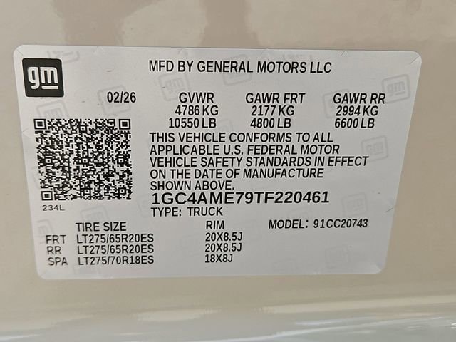 Custom Convenience Package (10-Way Power Driver Seat Adjuster with Lumbar, 120-Volt Bed Mounted Power Outlet, 120-Volt Interior Power Outlet, Dual Rear USB Ports (charge Only), Electric Rear-Window Defogger, EZ Lift Power Lock and Release Tailgate, LED Cargo Area Lighting, Remote Vehicle Starter System, and Unauthorized Entry Theft-Deterrent System), Preferred Equipment Group 1CX (170 Amp Alternator, 3.5 Diagonal Monochromatic Display DIC, 3.73 Rear Axle Ratio, Black Mirror Caps, Bluetooth® For Phone, Chevrolet Connected Access Capable, Color-Keyed Carpeting Floor Covering, Compass, Deep-Tinted Glass, Durabed Pickup Bed, Electronic Cruise Control with Set and Resume Speed, Front Rubberized Vinyl Floor Mats, HD Rear Vision Camera, Heated Vertical Trailering Mirrors, Locking Tailgate, Manual Tailgate Function with No EZ Lift, Manual Tilt-Wheel Steering Column, OnStar Services Capable, Power Door Locks, Power Front Windows with Driver Express Up/Down, Power Front Windows with Passenger Express Down, Power Rear Windows with Express Down, Push Button Start, Rear 60/40 Folding Bench Seat (folds Up), Rear Rubberized Vinyl Floor Mats, Remote Keyless Entry, SiriusXM with 360L Trial Subscription, Standard Tailgate, Wheels: 20 10-Spoke Machined Aluminum, Wi-Fi Hotspot Capable, and Wireless Phone Projection), Suspension Package, 10-Speed Automatic, Jet Black Cloth, 4-Wheel Disc Brakes, 6 Speakers, 6-Speaker Audio System, 720 Cold-Cranking Amps Heavy-Duty Battery, ABS brakes, Air Conditioning, Alloy wheels, AM/FM radio: SiriusXM with 360L, Apple CarPlay/Android Auto, Auto High-beam Headlights, Brake assist, Cloth Seat Trim, Delay-off headlights, Driver door bin, Dual front impact airbags, Dual front side impact airbags, Electronic Stability Control, Emergency communication system: OnStar, Front 40/20/40 Split-Bench Seats with Lockable Storage, Front anti-roll bar, Front Center Armrest w/Storage, Front License Plate Kit, Front reading lights, Front wheel independent suspension, Fully automatic headlights, Heated door mirrors, Illuminated entry, Low tire pressure warning, Occupant sensing airbag, Outside temperature display, Overhead airbag, Overhead console, Panic alarm, Passenger door bin, Passenger vanity mirror, Power door mirrors, Power steering, Power windows, Premium audio system: Chevrolet Infotainment 3, Radio: Chevrolet Infotainment 3 System, Rear reading lights, Rear step bumper, Remote keyless entry, Speed control, Split folding rear seat, Tachometer, Tilt steering wheel, Traction control, Trip computer, Turn signal indicator mirrors, Variably intermittent wipers, and Voltmeter. Tax, title, license and dealer fees (unless itemized above) are extra. Not available with special finance or lease offers. See Dealer for Details. Price includes: $500 - Customer Cash. Exp. 03/31/2026
