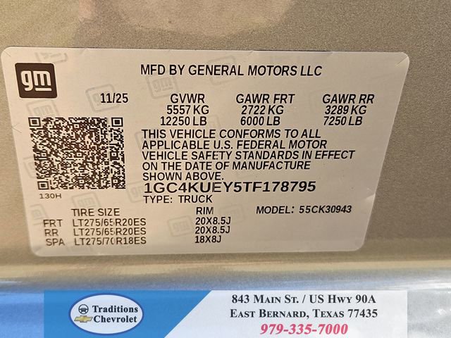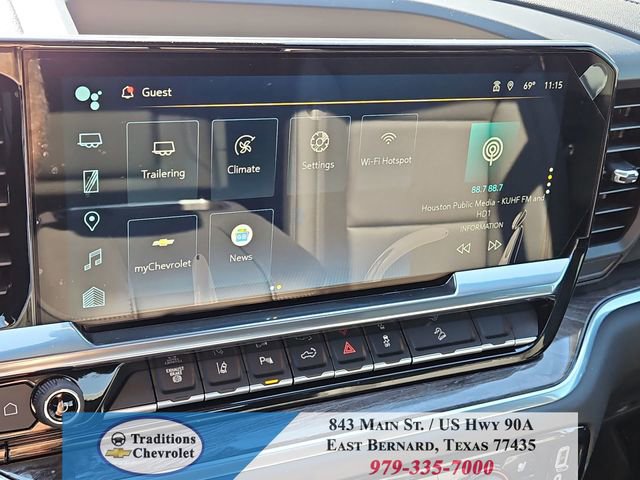 Gooseneck/5th Wheel Prep Package (Chevytec Spray-on Black Bedliner), Hitch Package, LTZ Convenience Package (2 Charge/Data USB Ports Inside Center Console, Bose Premium 7-Speaker Sound System, Floor-Mounted Center Console, Front Bucket Seats, LED Cargo Area Lighting, Ventilated Driver and Front Passenger Seats, and Wireless Charging), LTZ Convenience Package II (Adaptive Cruise Control, Heated 2nd Row Outboard Seats, Power Sliding Rear Window with Defogger, and Universal Home Remote), Preferred Equipment Group 1LZ (10-Way Power Driver Seat Adjuster with Lumbar, 10-Way Power Passenger Seat Adjuster with Lumbar, 120-Volt Bed Mounted Power Outlet, 120-Volt Interior Power Outlet, 170 Amp Alternator, 6-Speaker Audio System Feature, Auto-Dimming Inside Rear-View Mirror, Bluetooth® For Phone, Chevrolet Connected Access Capable, Chrome Door Handles, Chrome Mirror Caps, Color-Keyed Carpeting Floor Covering, Compass Located in Instrument Cluster, Deep-Tinted Glass, Driver Memory, Durabed Pickup Bed, Electric Rear-Window Defogger, EZ Lift Power Lock and Release Tailgate, Front 40/20/40 Split-Bench Seats with Lockable Storage, Front LED Fog Lamps, Front Rain-Sensing Wipers, Front Rubberized Vinyl Floor Mats, HD Rear Vision Camera, Heated Driver and Front Outboard Passenger Seats, Heated Steering Wheel, Hitch Guidance with Hitch View, in-Vehicle Trailering App System, Keyless Open and Start, Manual Tilt-Wheel/Telescoping Steering Column, OnStar Services Capable, Perforated Leather-Appointed Front Outboard Seat Trim, Power Door Locks, Power Front Windows with Driver Express Up/Down, Power Front Windows with Passenger Express Up/Down, Power Rear Windows with Express Down, Push Button Start, Rear Rubberized-Vinyl Floor Mats, Remote Vehicle Starter System, SiriusXM with 360L Trial Subscription, Standard Tailgate, Steering Wheel Audio Controls, Steering Wheel Mounted Electronic Cruise Control, Unauthorized Entry Theft-Deterrent System, Wi-Fi Hotspot Capable, and Wrapped Steering Wheel), Safety Package (Bed View Camera with Two Trailer Camera Provisions, HD Surround Vision, Rear Cross Traffic Alert, Safety Alert Seat, Trailer Camera Provisions, Trailer Side Blind Zone Alert, and Ultrasonic Front and Rear Park Assist), Suspension Package, Technology Package (Auto-Dimming Inside Rearview Mirror with Camera and Multicolor 15 Diagonal Head-Up Display), Up-Level Rear Seat with Storage Package, 10-Speed Automatic, 4WD, Jet Black Leather, 220 Amp Alternator, 4-Wheel Disc Brakes, 6 Speakers, ABS brakes, Air Conditioning, AM/FM radio: SiriusXM with 360L, Apple CarPlay/Android Auto, Auto High-beam Headlights, Auto-dimming door mirrors, Auto-dimming Rear-View mirror, Automatic temperature control, Brake assist, Bumpers: chrome, Compass, Delay-off headlights, Driver door bin, Driver vanity mirror, Dual front impact airbags, Dual front side impact airbags, Electronic Stability Control, Emergency communication system, Engine Block Heater, Exhaust Brake, Front anti-roll bar, Front Center Armrest w/Storage, Front dual zone A/C, Front fog lights, Front License Plate Kit, Front reading lights, Front wheel independent suspension, Fully automatic headlights, Heated door mirrors, Heated front seats, Heated steering wheel, Heavy-Duty 80 Amp-Hour Battery, High Idle Switch, Illuminated entry, Low tire pressure warning, Memory seat, Occupant sensing airbag, Outside temperature display, Overhead airbag, Overhead console, Panic alarm, Passenger door bin, Passenger vanity mirror, Power door mirrors, Power driver seat, Power passenger seat, Power steering, Power Sunroof, Power Tailgate, Power windows, Power-Retractable Assist Steps, Premium audio system: Chevrolet Infotainment 3 Premium, Radio: Chevrolet Infotainment 3 Premium Tax, title, license and dealer fees (unless itemized above) are extra. Not available with special finance or lease offers. See Dealer for Details. Pri