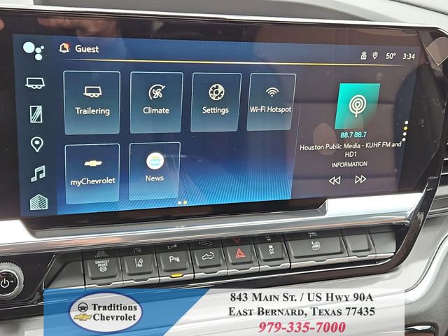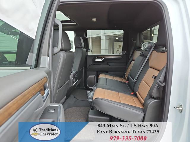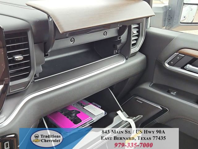 Gooseneck/5th Wheel Prep Package (Chevytec Spray-on Black Bedliner), Hitch Package, Preferred Equipment Group 3LZ (120-Volt Bed Mounted Power Outlet, 120-Volt Interior Power Outlet, 170 Amp Alternator, 6 Rectangular Chromed Tubular Assist Steps, Auto-Dimming Inside Rear-View Mirror, Bed View Camera with Two Trailer Camera Provisions, Bluetooth® For Phone, Chevrolet Connected Access Capable, Chrome Door Handles, Chrome Mirror Caps, Color-Keyed Carpeting Floor Covering, Compass Located in Instrument Cluster, Deep-Tinted Glass, Durabed Pickup Bed, Electric Rear-Window Defogger, Front Bucket Seats, Front Carpeted Floor Mats, Front Chrome Recovery Hooks, Front LED Fog Lamps, Front Rain-Sensing Wipers, Heated 2nd Row Outboard Seats, Heated Steering Wheel, Hitch Guidance with Hitch View, in-Vehicle Trailering App System, Keyless Open and Start, LED Cargo Area Lighting, Manual Tilt-Wheel/Telescoping Steering Column, OnStar Services Capable, Perforated Leather Seating Surfaces, Polished Exhaust Tip, Power Door Locks, Power Front Windows with Driver Express Up/Down, Power Front Windows with Passenger Express Up/Down, Power Rear Windows with Express Down, Power Sliding Rear Window with Defogger, Power Tailgate, Push Button Start, Rear Carpeted Floor Mats, Rear Cross Traffic Alert, Rear Wheelhouse Liners, Remote Vehicle Starter System, SiriusXM with 360L Trial Subscription, Standard Tailgate, Steering Wheel Audio Controls, Trailer Camera Provisions, Trailer Side Blind Zone Alert, Ultrasonic Front and Rear Park Assist, Unauthorized Entry Theft-Deterrent System, Universal Home Remote, Wi-Fi Hotspot Capable, Wireless Charging, and Wrapped Steering Wheel), Suspension Package, Technology Package (Auto-Dimming Inside Rearview Mirror with Camera and Multicolor 15 Diagonal Head-Up Display), Up-Level Rear Seat with Storage Package, 10-Speed Automatic, 4WD, Jet Black/Umber Leather, 10-Way Power Driver Seat Adjuster with Lumbar, 10-Way Power Passenger Seat Adjuster with Lumbar, 4-Wheel Disc Brakes, 7 Speakers, ABS brakes, Air Conditioning, Alloy wheels, AM/FM radio: SiriusXM with 360L, Apple CarPlay/Android Auto, Auto High-beam Headlights, Auto-dimming door mirrors, Auto-dimming Rear-View mirror, Automatic temperature control, Bodyside moldings, Bose Premium 7-Speaker Sound System, Brake assist, Bumpers: body-color, Compass, Delay-off headlights, Driver door bin, Driver Memory, Driver vanity mirror, Dual 220-Amps Primary and 170-Amps Auxiliary Alternators, Dual front impact airbags, Dual front side impact airbags, Electronic Stability Control, Emergency communication system, Engine Block Heater, Exhaust Brake, Floor-Mounted Center Console, Front anti-roll bar, Front Center Armrest, Front dual zone A/C, Front fog lights, Front License Plate Kit, Front reading lights, Front wheel independent suspension, Fully automatic headlights, Garage door transmitter, Genuine wood console insert, Genuine wood dashboard insert, Genuine wood door panel insert, Heated door mirrors, Heated Driver and Front Outboard Passenger Seats, Heated front seats, Heated rear seats, Heated steering wheel, Heavy-Duty 80 Amp-Hour Battery, High Idle Switch, Illuminated entry, Low tire pressure warning, Memory seat, Occupant sensing airbag, Outside temperature display, Overhead airbag, Overhead console, Panic alarm, Passenger door bin, Passenger vanity mirror, Power door mirrors, Power driver seat, Power passenger seat, Power steering, Power Sunroof, Power windows, Power-Retractable Assist Steps, Premium audio system: Chevrolet Infotainment 3 Premium, Radio: Chevrolet Infotainment 3 Premium System, Rain sensing wipers, Rear reading lights, Rear seat center armrest, Rear step bumper, Rear window defroster, Remote keyless entry, Sec Tax, title, license and dealer fees (unless itemized above) are extra. Not available with special finance or lease offers. See Dealer for Details. Pric
