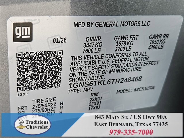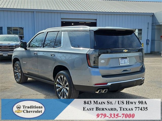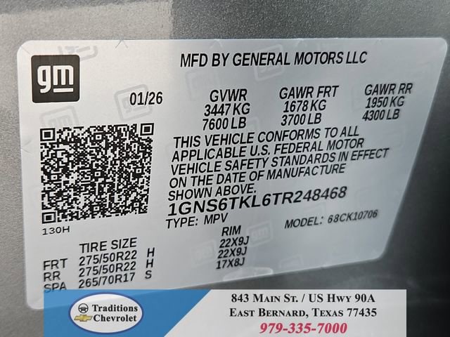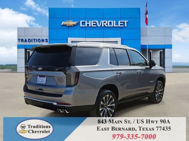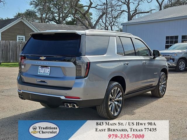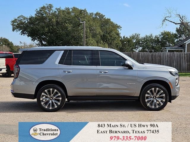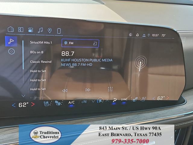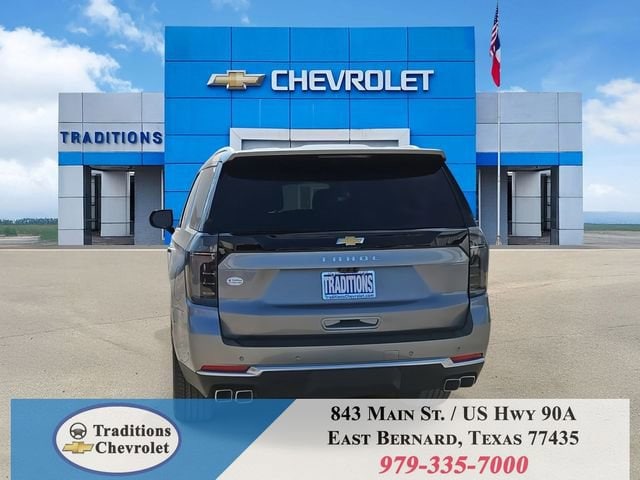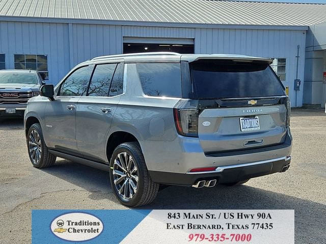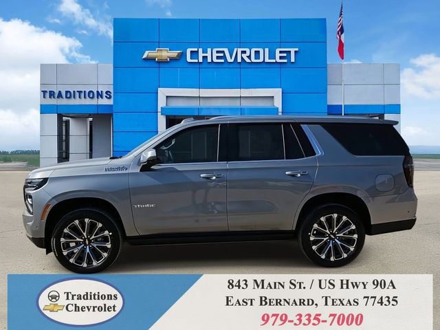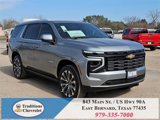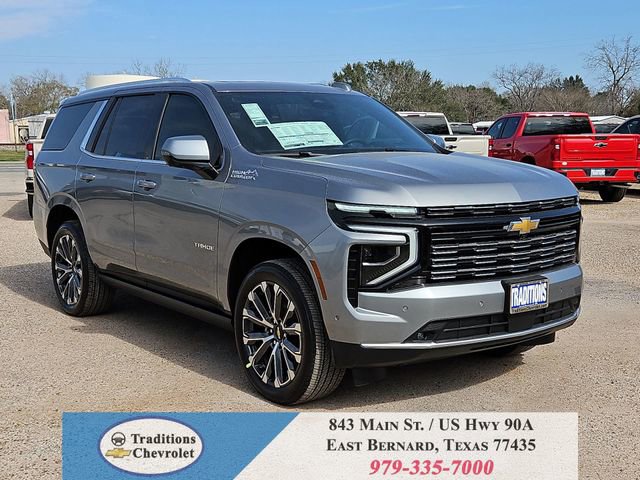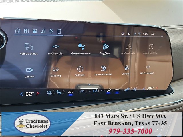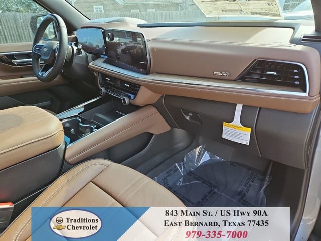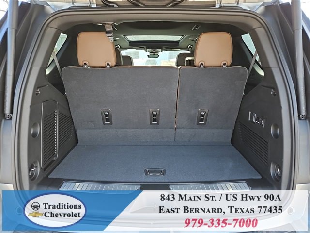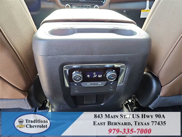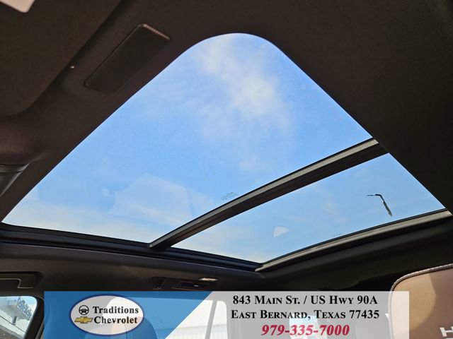 Advanced Trailering Package (Blind Zone Steering Assist with Trailering, Hitch View with Pan/Zoom Image Adjustment, and Smart Trailer Integration Indicator), High Country Deluxe (Air Ride Adaptive Suspension, Dual-Pane Power Panoramic Sunroof, and Power-Retractable Assist Steps), License Plate Front Mounting Package, Max Trailering Package (2-Speed Active Electronic AutoTrac Transfer Case, Hill Descent Control, and Integrated Trailer Brake Controller), Preferred Equipment Group 3LZ (15 Diagonal Multi-Color Head-Up Display, 1st and 2nd Row Color-Keyed Carpeted Floor Mats, 3-Spoke Wrapped Steering Wheel, 3rd Row 60/40 Power-Folding Split-Bench Seat, Bose 10-Speaker Centerpoint Surround Audio System Feature, Bright Front and Rear Door Sill Plates, Chrome Door Handles with Body-Color Strip, Color-Keyed Carpeting Floor Covering, Dual Exhaust System, Floor Console, Front Bucket Seats, Front LED Fog Lamps, Frontal Driver and Outboard Passenger Airbags, Heated 2nd Row Outboard Seats, Heated Steering Wheel, Inside Rearview Auo-Dimming Rear Camera Mirror, Interior Camera, Key Card, LED Headlamps with LED Daytime Running Lamps, LED Tail Lamps, Magnetic Ride Control Suspension, Memory Settings, Outside Heated Power-Adjustable Mirrors, Power Release 2nd Row Bucket Seats, Power Tilt and Telescopic Steering Column, Rear Power Liftgate, Remote Start, Set of 4 Wheel Locks, SiriusXM with 360L Trial Subscription, Universal Home Remote, Wheels: 22 x 9 Bright Machined Aluminum, and Wireless Phone Charging), 4WD, Jet Black/Mocha Leather, 10 Speakers, 1st and 2nd Rows All-Weather Floor Liners, 3.23 Rear Axle Ratio, 3rd row seats: split-bench, 4-Way Power Driver Lumbar Seat Adjuster, 4-Way Power Front Passenger Lumbar Seat Adjuster, 4-Wheel Disc Brakes, 8-Way Power Driver Seat Adjuster, 8-Way Power Front Passenger Seat Adjuster, ABS brakes, Adaptive suspension, Air Conditioning, Alloy wheels, AM/FM radio: SiriusXM with 360L, Apple CarPlay/Android Auto, Auto High-beam Headlights, Auto-dimming door mirrors, Auto-dimming Rear-View mirror, Auto-leveling suspension, Automatic temperature control, Brake assist, Bumpers: body-color, Compass, Delay-off headlights, Driver and Front Passenger Heated and Ventilated Seats, Driver door bin, Driver vanity mirror, Dual front impact airbags, Dual front side impact airbags, Electronic Stability Control, Emergency communication system: OnStar and Chevrolet connected services capable, Exterior Parking Camera Rear, Extra Capacity Cooling System, Four wheel independent suspension, Front anti-roll bar, Front Center Armrest, Front dual zone A/C, Front fog lights, Front reading lights, Fully automatic headlights, Garage door transmitter, Heads-Up Display, Heated door mirrors, Heated Driver and Front Passenger Seats, Heated front seats, Heated rear seats, Heated steering wheel, Illuminated entry, Low tire pressure warning, Memory seat, Navigation system: Google built-in compatibility (select service plan required, terms and limitations apply), Occupant sensing airbag, Outside temperature display, Overhead airbag, Overhead console, Panic alarm, Passenger door bin, Passenger vanity mirror, Perforated Leather Seat Trim, Power door mirrors, Power driver seat, Power Liftgate, Power passenger seat, Power steering, Power windows, Premium audio system: Chevrolet Infotainment 3 Premium, Radio data system, Radio: 17.7 Diagonal Advanced Color LCD Display, Rain sensing wipers, Rear air conditioning, Rear anti-roll bar, Rear reading lights, Rear window defroster, Rear window wiper, Remote keyless entry, Security system, Speed control, Speed-sensing steering, Split folding rear seat, Spoiler, Steering wheel memory, Steering wheel mounted audio controls, Super Cruise, Tachometer, Telescoping steering wheel, Tilt steering wheel, Traction control, Trip computer, Turn signal indicator mirrors, Variably intermittent wipers, Ventilated front seats, and Voltme