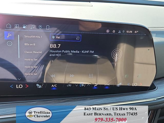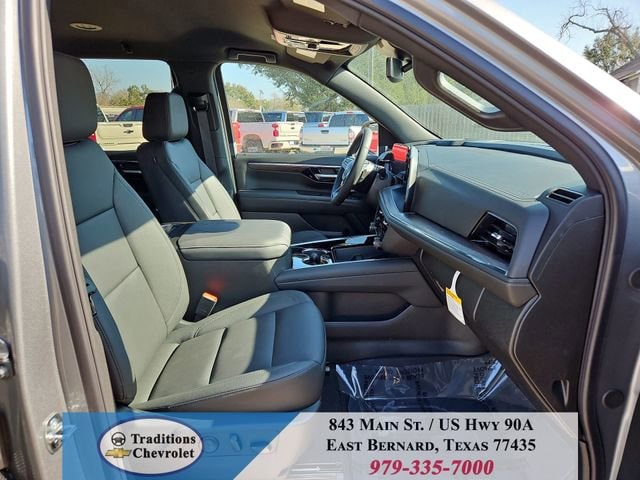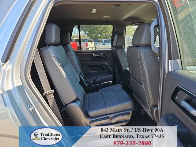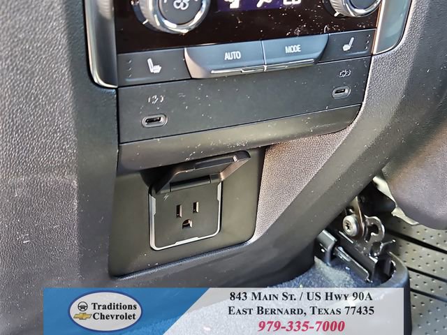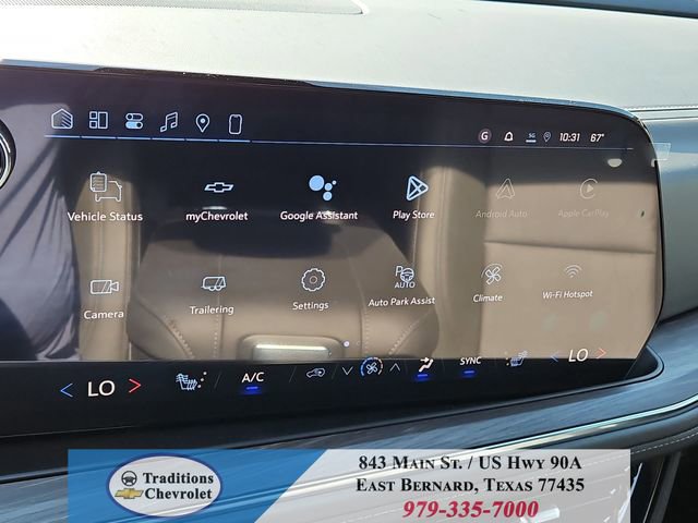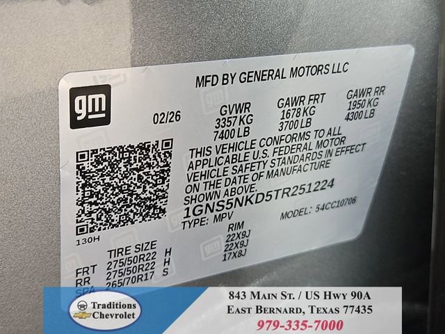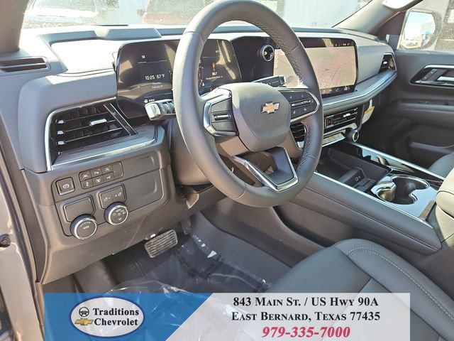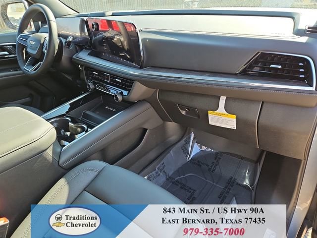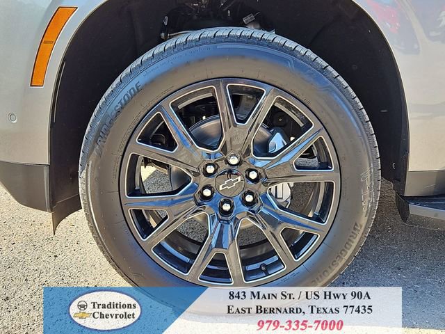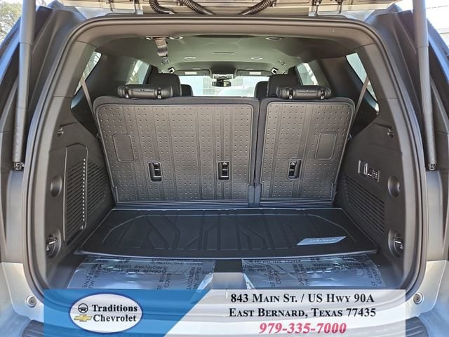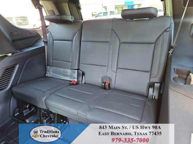 All-Weather Liner Protection Package (1st and 2nd Rows All-Weather Floor Liners, 3rd Row All-Weather Floor Liners, and All-Weather Cargo Mat), Comfort Package (2nd Row Power Release 60/40 Split-Folding Bench Seat, 3rd Row 60/40 Power-Folding Split-Bench Seat, Bose 10-Speaker Centerpoint Surround Audio System Feature, Heated 2nd Row Outboard Seats, Heated Steering Wheel, LED Headlamps with LED Daytime Running Lamps, LED Tail Lamps, Memory Settings, and Outside Heated Power-Adjustable Mirrors), License Plate Front Mounting Package, Luxury Package (Auto-Dimming Inside Rear-View Mirror, Front LED Fog Lamps, and Universal Home Remote), Preferred Equipment Group 1LT (1st and 2nd Row Color-Keyed Carpeted Floor Mats, 3-Spoke Wrapped Steering Wheel, 3rd Row Manual 60/40 Split-Folding Bench Seats, Color-Keyed Carpeting Floor Covering, Floor Console with Storage Area, Front Bucket Seats, Frontal Driver and Outboard Passenger Airbags, Interior Camera, Key Card, Memory Settings For Driver, Rear Power Liftgate, Remote Start, SiriusXM with 360L Trial Subscription, USB Ports, and Wireless Phone Charging), Black Leather, 2-Way Power Driver Lumbar Seat Adjuster, 2-Way Power Front Passenger Lumbar Seat Adjuster, 3.23 Rear Axle Ratio, 3rd row seats: split-bench, 4-Wheel Disc Brakes, 6 Speakers, 6-Speaker Audio System Feature, 8-Way Power Driver Seat Adjuster, 8-Way Power Front Passenger Seat Adjuster, ABS brakes, Air Conditioning, Alloy wheels, AM/FM radio: SiriusXM with 360L, Apple CarPlay/Android Auto, Auto High-beam Headlights, Automatic temperature control, Brake assist, Bumpers: body-color, Compass, Delay-off headlights, Driver door bin, Driver vanity mirror, Dual front impact airbags, Dual front side impact airbags, Electronic Stability Control, Emergency communication system: OnStar and Chevrolet connected services capable, Exterior Parking Camera Rear, Four wheel independent suspension, Front anti-roll bar, Front Center Armrest, Front dual zone A/C, Front reading lights, Fully automatic headlights, Heated door mirrors, Heated Driver and Front Passenger Seats, Heated front seats, Illuminated entry, Leather-Appointed Seat Trim, Low tire pressure warning, Memory seat, Navigation system: Google built-in compatibility (select service plan required, terms and limitations apply), Occupant sensing airbag, Outside temperature display, Overhead airbag, Overhead console, Panic alarm, Passenger door bin, Passenger vanity mirror, Power door mirrors, Power driver seat, Power Liftgate, Power passenger seat, Power Release 2nd Row Bucket Seats, Power steering, Power windows, Premium audio system: Chevrolet Infotainment 3 Premium, Premium Smooth Ride Suspension, Radio data system, Radio: 17.7 Diagonal Advanced Color LCD Display, Rain sensing wipers, Rear air conditioning, Rear anti-roll bar, Rear reading lights, Rear seat center armrest, Rear window defroster, Rear window wiper, Remote keyless entry, Security system, Set of 4 Wheel Locks, Speed control, Speed-sensing steering, Split folding rear seat, Spoiler, Steering wheel mounted audio controls, Tachometer, Telescoping steering wheel, Tilt steering wheel, Traction control, Trip computer, Variably intermittent wipers, Voltmeter, Wheels: 18 x 8.5 Bright Silver Painted Aluminum, and Wheels: 22 x 9 6-Spoke Carbon Flash Metallic Aluminum.