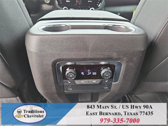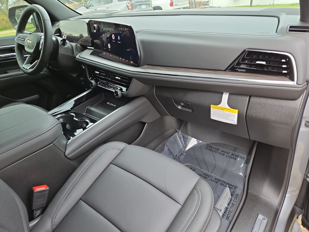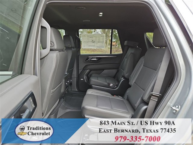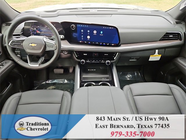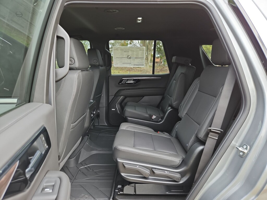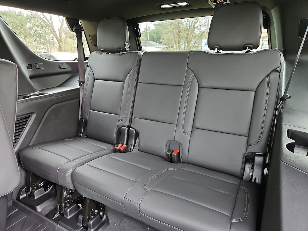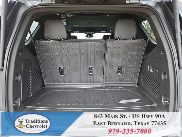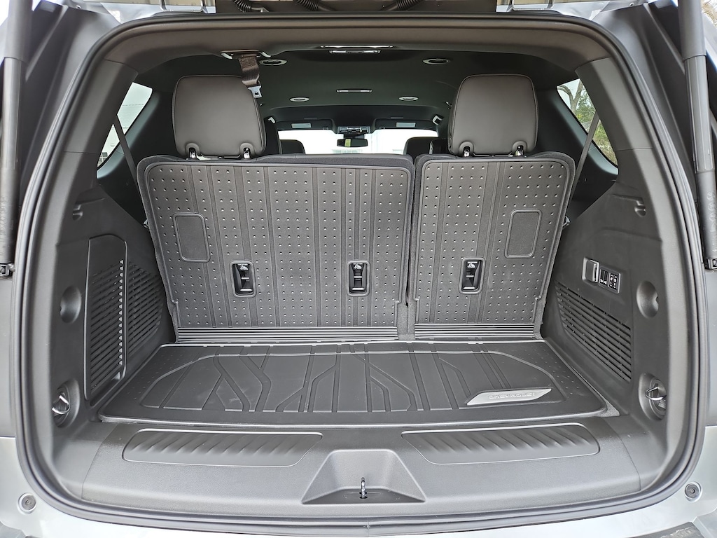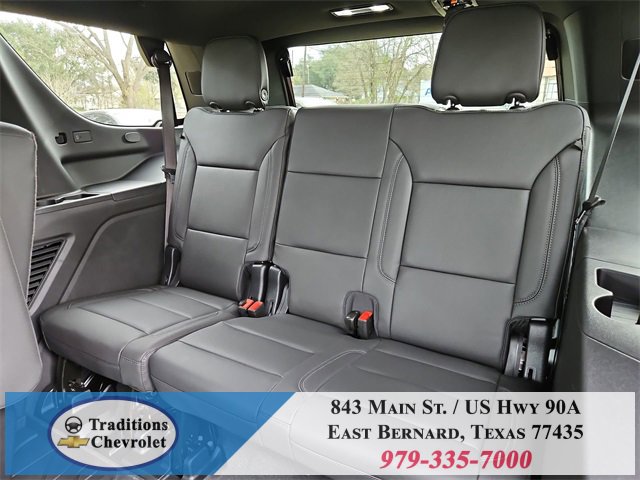 All-Weather Liner Protection Package (1st and 2nd Rows All-Weather Floor Liners, 3rd Row All-Weather Floor Liners, and All-Weather Cargo Mat), Comfort Package (2nd Row Power Release 60/40 Split-Folding Bench Seat, 3rd Row 60/40 Power-Folding Split-Bench Seat, Bose 10-Speaker Centerpoint Surround Audio System Feature, Heated 2nd Row Outboard Seats, Heated Steering Wheel, LED Headlamps with LED Daytime Running Lamps, LED Tail Lamps, Memory Settings, and Outside Heated Power-Adjustable Mirrors), License Plate Front Mounting Package, Luxury Package (Auto-Dimming Inside Rear-View Mirror, Front LED Fog Lamps, and Universal Home Remote), Preferred Equipment Group 1LT (1st and 2nd Row Color-Keyed Carpeted Floor Mats, 3-Spoke Wrapped Steering Wheel, 3rd Row Manual 60/40 Split-Folding Bench Seats, Color-Keyed Carpeting Floor Covering, Floor Console with Storage Area, Front Bucket Seats, Frontal Driver and Outboard Passenger Airbags, Interior Camera, Key Card, Memory Settings For Driver, Rear Power Liftgate, Remote Start, SiriusXM with 360L Trial Subscription, USB Ports, and Wireless Phone Charging), Black Leather, 2-Way Power Driver Lumbar Seat Adjuster, 2-Way Power Front Passenger Lumbar Seat Adjuster, 3.23 Rear Axle Ratio, 3rd row seats: split-bench, 4-Wheel Disc Brakes, 6 Speakers, 6-Speaker Audio System Feature, 8-Way Power Driver Seat Adjuster, 8-Way Power Front Passenger Seat Adjuster, ABS brakes, Air Conditioning, Alloy wheels, AM/FM radio: SiriusXM with 360L, Apple CarPlay/Android Auto, Auto High-beam Headlights, Automatic temperature control, Brake assist, Bumpers: body-color, Compass, Delay-off headlights, Driver door bin, Driver vanity mirror, Dual front impact airbags, Dual front side impact airbags, Electronic Stability Control, Emergency communication system: OnStar and Chevrolet connected services capable, Exterior Parking Camera Rear, Four wheel independent suspension, Front anti-roll bar, Front Center Armrest, Front dual zone A/C, Front reading lights, Fully automatic headlights, Heated door mirrors, Heated Driver and Front Passenger Seats, Heated front seats, Illuminated entry, Leather-Appointed Seat Trim, Low tire pressure warning, Memory seat, Navigation system: Google built-in compatibility (select service plan required, terms and limitations apply), Occupant sensing airbag, Outside temperature display, Overhead airbag, Overhead console, Panic alarm, Passenger door bin, Passenger vanity mirror, Power door mirrors, Power driver seat, Power Liftgate, Power passenger seat, Power Release 2nd Row Bucket Seats, Power steering, Power windows, Premium audio system: Chevrolet Infotainment 3 Premium, Premium Smooth Ride Suspension, Radio data system, Radio: 17.7 Diagonal Advanced Color LCD Display, Rain sensing wipers, Rear air conditioning, Rear anti-roll bar, Rear reading lights, Rear seat center armrest, Rear window defroster, Rear window wiper, Remote keyless entry, Security system, Speed control, Speed-sensing steering, Split folding rear seat, Spoiler, Steering wheel mounted audio controls, Tachometer, Telescoping steering wheel, Tilt steering wheel, Traction control, Trip computer, Variably intermittent wipers, Voltmeter, Wheels: 18 x 8.5 Bright Silver Painted Aluminum, and Wheels: 20 x 9 Machined Aluminum.