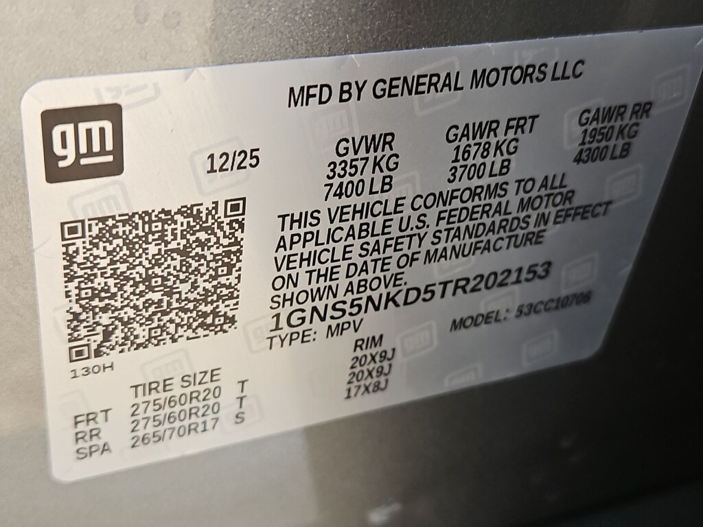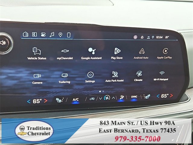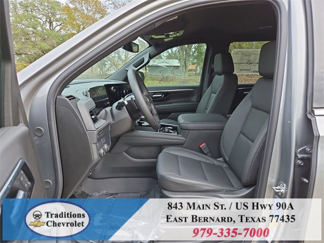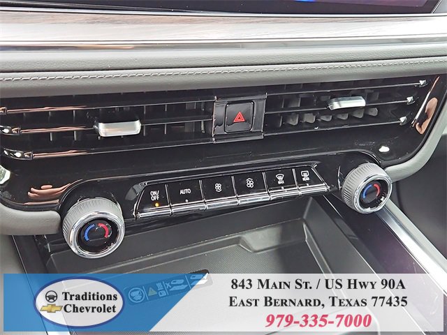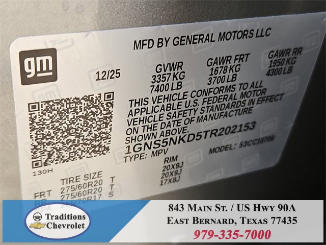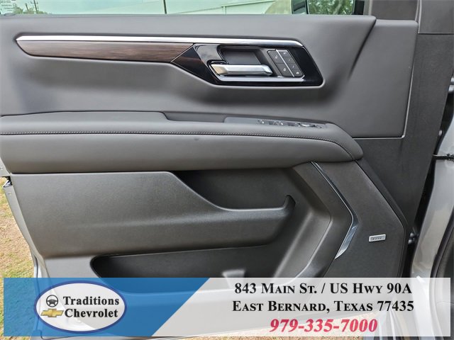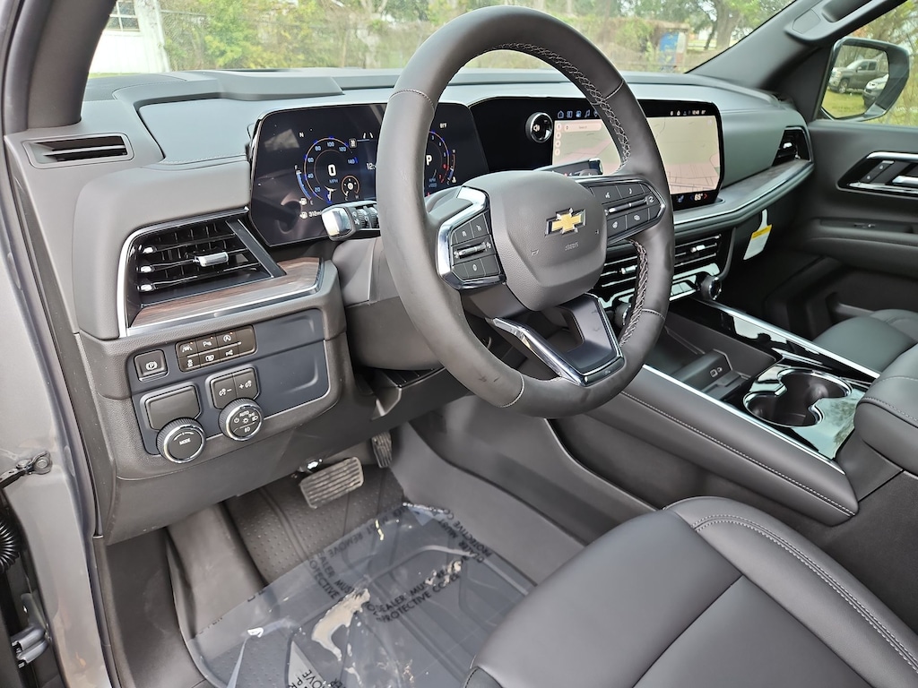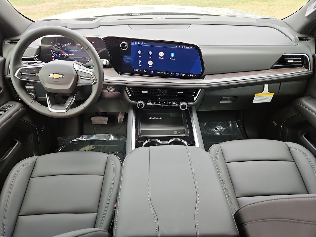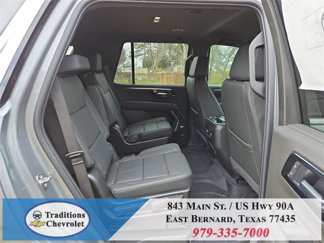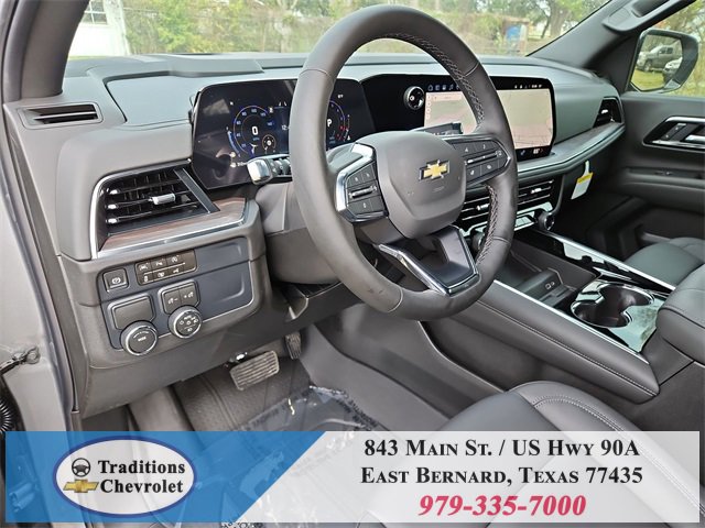 All-Weather Liner Protection Package (1st and 2nd Rows All-Weather Floor Liners, 3rd Row All-Weather Floor Liners, and All-Weather Cargo Mat), Comfort Package (2nd Row Power Release 60/40 Split-Folding Bench Seat, 3rd Row 60/40 Power-Folding Split-Bench Seat, Bose 10-Speaker Centerpoint Surround Audio System Feature, Heated 2nd Row Outboard Seats, Heated Steering Wheel, LED Headlamps with LED Daytime Running Lamps, LED Tail Lamps, Memory Settings, and Outside Heated Power-Adjustable Mirrors), License Plate Front Mounting Package, Luxury Package (Auto-Dimming Inside Rear-View Mirror, Front LED Fog Lamps, and Universal Home Remote), Preferred Equipment Group 1LT (1st and 2nd Row Color-Keyed Carpeted Floor Mats, 3-Spoke Wrapped Steering Wheel, 3rd Row Manual 60/40 Split-Folding Bench Seats, Color-Keyed Carpeting Floor Covering, Floor Console with Storage Area, Front Bucket Seats, Frontal Driver and Outboard Passenger Airbags, Interior Camera, Key Card, Memory Settings For Driver, Rear Power Liftgate, Remote Start, SiriusXM with 360L Trial Subscription, USB Ports, and Wireless Phone Charging), Black Leather, 2-Way Power Driver Lumbar Seat Adjuster, 2-Way Power Front Passenger Lumbar Seat Adjuster, 3.23 Rear Axle Ratio, 3rd row seats: split-bench, 4-Wheel Disc Brakes, 6 Speakers, 6-Speaker Audio System Feature, 8-Way Power Driver Seat Adjuster, 8-Way Power Front Passenger Seat Adjuster, ABS brakes, Air Conditioning, Alloy wheels, AM/FM radio: SiriusXM with 360L, Apple CarPlay/Android Auto, Auto High-beam Headlights, Automatic temperature control, Brake assist, Bumpers: body-color, Compass, Delay-off headlights, Driver door bin, Driver vanity mirror, Dual front impact airbags, Dual front side impact airbags, Electronic Stability Control, Emergency communication system: OnStar and Chevrolet connected services capable, Exterior Parking Camera Rear, Four wheel independent suspension, Front anti-roll bar, Front Center Armrest, Front dual zone A/C, Front reading lights, Fully automatic headlights, Heated door mirrors, Heated Driver and Front Passenger Seats, Heated front seats, Illuminated entry, Leather-Appointed Seat Trim, Low tire pressure warning, Memory seat, Navigation system: Google built-in compatibility (select service plan required, terms and limitations apply), Occupant sensing airbag, Outside temperature display, Overhead airbag, Overhead console, Panic alarm, Passenger door bin, Passenger vanity mirror, Power door mirrors, Power driver seat, Power Liftgate, Power passenger seat, Power Release 2nd Row Bucket Seats, Power steering, Power windows, Premium audio system: Chevrolet Infotainment 3 Premium, Premium Smooth Ride Suspension, Radio data system, Radio: 17.7 Diagonal Advanced Color LCD Display, Rain sensing wipers, Rear air conditioning, Rear anti-roll bar, Rear reading lights, Rear seat center armrest, Rear window defroster, Rear window wiper, Remote keyless entry, Security system, Speed control, Speed-sensing steering, Split folding rear seat, Spoiler, Steering wheel mounted audio controls, Tachometer, Telescoping steering wheel, Tilt steering wheel, Traction control, Trip computer, Variably intermittent wipers, Voltmeter, Wheels: 18 x 8.5 Bright Silver Painted Aluminum, and Wheels: 20 x 9 Machined Aluminum.