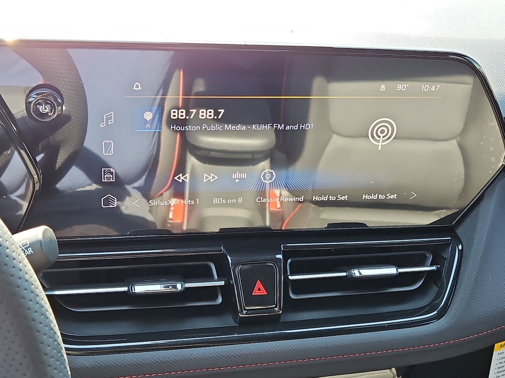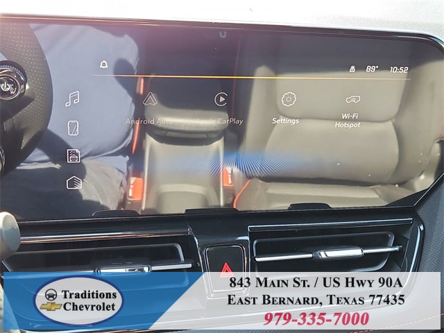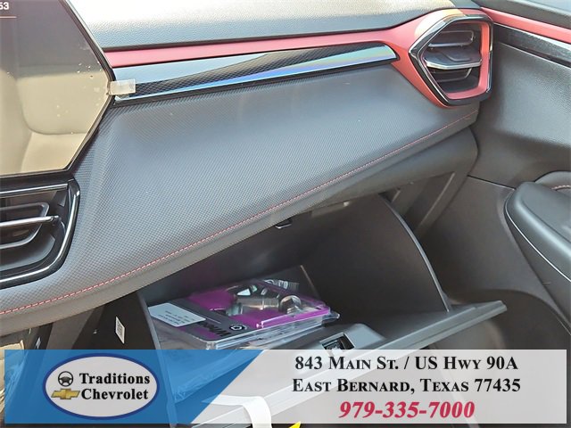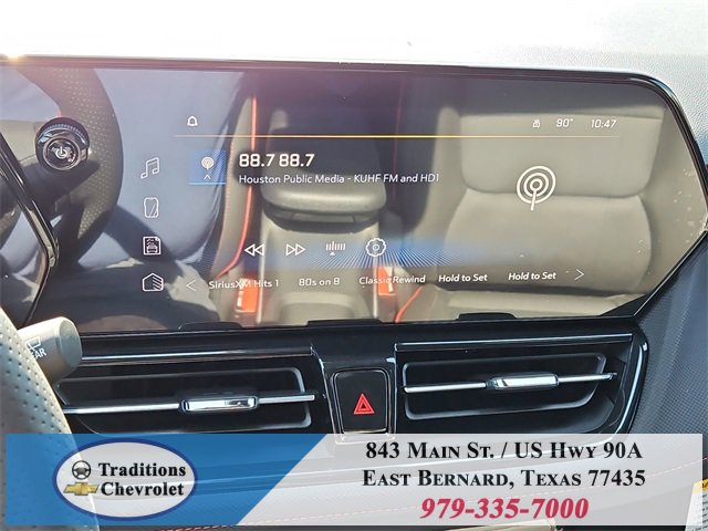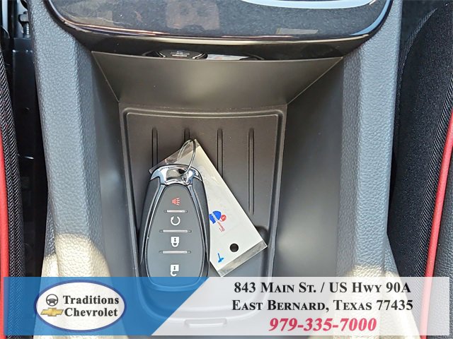 Driver Confidence Package (Lane Change Alert with Side Blind Zone Alert, Rear Cross Traffic Alert, and Rear Park Assist), Preferred Equipment Group 1RS, 1 Type-An and 1 Type-C USB Ports, 2-Way Power Driver Lumbar Seat Adjuster, 4-Way Manual Front Passenger Seat Adjuster, 4-Wheel Disc Brakes, 5.45 Final Drive Axle Ratio, 6 Speakers, 8-Way Power Driver Seat Adjuster, ABS brakes, Air Conditioning, Alloy wheels, AM/FM radio: SiriusXM, Auto High-beam Headlights, Brake assist, Bumpers: body-color, Compass, Delay-off headlights, Driver door bin, Driver vanity mirror, Dual front impact airbags, Dual front side impact airbags, Electronic Stability Control, Emergency communication system: OnStar and Chevrolet connected services capable, Enhanced Performance 6-Speaker Audio System, Evotex Seat Trim, Exterior Parking Camera Rear, Flat-Folding Front Passenger Seatback, Front anti-roll bar, Front Bucket Seats, Front Center Armrest, Front License Plate Bracket, Front reading lights, Front wheel independent suspension, Fully automatic headlights, Heated door mirrors, Heated Driver and Front Passenger Seats, Heated front seats, Heated steering wheel, Illuminated entry, Knee airbag, Low tire pressure warning, Mechanical Jack with Tools, Mosaic Black Metallic Roof, Occupant sensing airbag, Overhead airbag, Overhead console, Panic alarm, Passenger door bin, Passenger vanity mirror, Power door mirrors, Power driver seat, Power steering, Power windows, Radio data system, Radio: AM/FM Stereo Audio System, Rear seat center armrest, Rear side impact airbag, Rear window defroster, Rear window wiper, Remote keyless entry, Ride and Handling Suspension, Security system, SiriusXM Trial Subscription, Speed control, Split folding rear seat, Spoiler, Steering wheel mounted audio controls, Tachometer, Telescoping steering wheel, Tilt steering wheel, Traction control, Trip computer, Variably intermittent wipers, Wheels: 19 High Gloss Black Machined Aluminum, and Wireless Apple CarPlay/Android Auto.