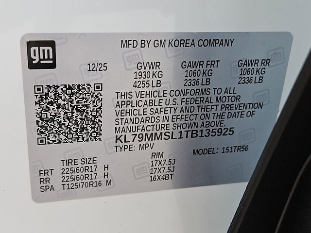 LS Confidence Package (Lane Change Alert with Side Blind Zone Alert, Rear Cross Traffic Alert, and Rear Park Assist), LS Convenience Package (Rear Windows and Liftgate Deep-Tinted Glass and Remote Start), Preferred Equipment Group 1LS, 1 Type-An and 1 Type-C USB Ports, 4 Speakers, 4-Speaker Audio System Feature, 4-Way Manual Front Passenger Seat Adjuster, 4-Wheel Disc Brakes, 5.45 Final Drive Axle Ratio, 6-Way Manual Driver Seat Adjuster, ABS brakes, Air Conditioning, Alloy wheels, AM/FM radio: SiriusXM, Auto High-beam Headlights, Brake assist, Bumpers: body-color, Cloth Seat Trim, Compass, Delay-off headlights, Driver door bin, Driver vanity mirror, Dual front impact airbags, Dual front side impact airbags, Electronic Stability Control, Emergency communication system: OnStar and Chevrolet connected services capable, Exterior Parking Camera Rear, Flat-Folding Front Passenger Seatback, Front anti-roll bar, Front Bucket Seats, Front Center Armrest, Front License Plate Bracket, Front reading lights, Front wheel independent suspension, Fully automatic headlights, Illuminated entry, Knee airbag, Low tire pressure warning, Mechanical Jack with Tools, Occupant sensing airbag, Overhead airbag, Overhead console, Panic alarm, Passenger door bin, Passenger vanity mirror, Power door mirrors, Power steering, Power windows, Radio data system, Radio: AM/FM Stereo Audio System, Rear side impact airbag, Rear window defroster, Rear window wiper, Reinforced Electric Heater/Defroster System, Remote keyless entry, Ride and Handling Suspension, Security system, SiriusXM Trial Subscription, Speed control, Split folding rear seat, Spoiler, Steering wheel mounted audio controls, Tachometer, Telescoping steering wheel, Tilt steering wheel, Traction control, Trip computer, Variably intermittent wipers, Wheels: 17 Silver-Painted Aluminum, and Wireless Apple CarPlay/Android Auto.