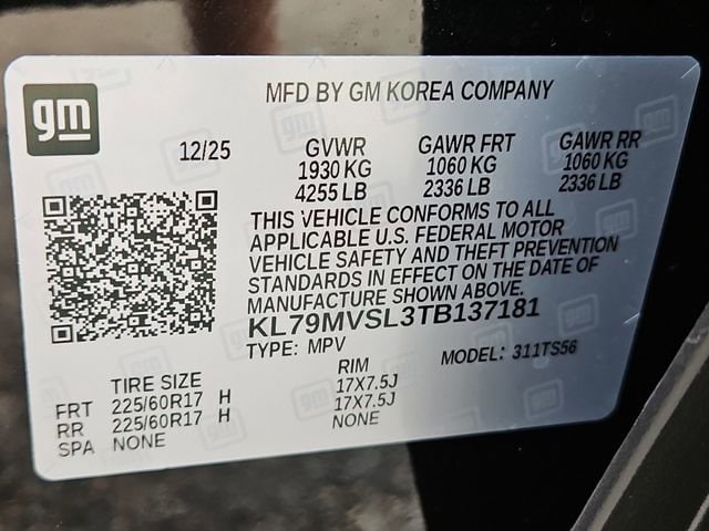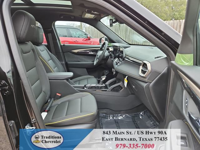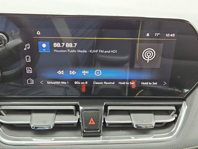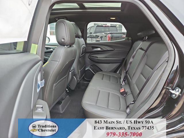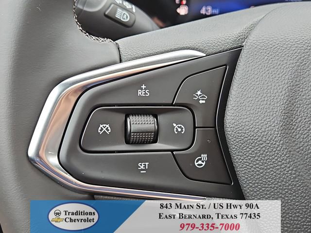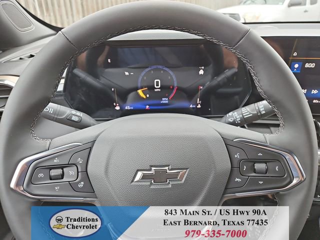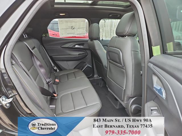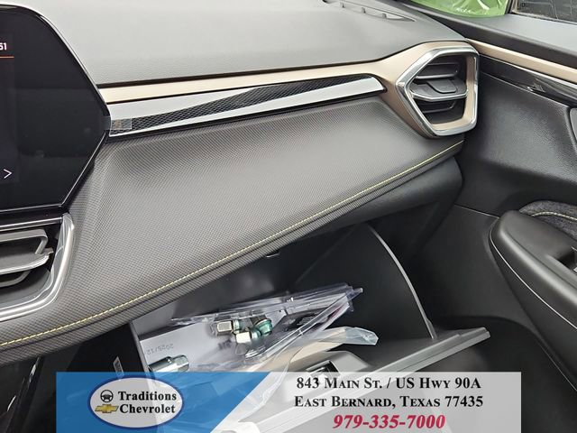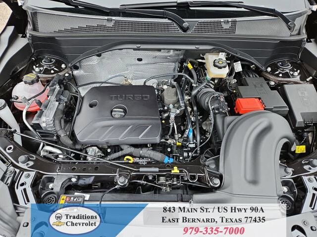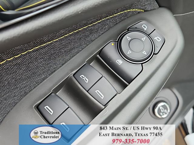 Convenience Package (1 Type-An and 1 Type-C USB Charging-Only Ports, 120-Volt Power Outlet, Cabin Humidity Sensor, Driver and Front Passenger Illuminated Vanity Mirrors, Hands Free Power Programmable Liftgate, Inside Rear-View Auto-Dimming Mirror, Single-Zone Automatic Climate Control, and Wireless Charging), Driver Confidence Package (Lane Change Alert with Side Blind Zone Alert, Rear Cross Traffic Alert, and Rear Park Assist), 1 Type-An and 1 Type-C USB Ports, 2-Way Power Driver Lumbar Seat Adjuster, 4-Way Manual Front Passenger Seat Adjuster, 4-Wheel Disc Brakes, 5.45 Final Drive Axle Ratio, 6 Speakers, 8-Way Power Driver Seat Adjuster, ABS brakes, Air Conditioning, Alloy wheels, AM/FM radio: SiriusXM, Auto High-beam Headlights, Brake assist, Bumpers: body-color, Compass, Delay-off headlights, Driver door bin, Driver vanity mirror, Dual front impact airbags, Dual front side impact airbags, Dual-Pane Panoramic Power Sunroof, Electronic Stability Control, Emergency communication system: OnStar and Chevrolet connected services capable, Enhanced Performance 6-Speaker Audio System, Evotex Seat Trim, Exterior Parking Camera Rear, Flat-Folding Front Passenger Seatback, Front anti-roll bar, Front Bucket Seats, Front Center Armrest, Front reading lights, Front wheel independent suspension, Fully automatic headlights, Heated door mirrors, Heated Driver and Front Passenger Seats, Heated front seats, Heated steering wheel, Illuminated entry, Knee airbag, Low tire pressure warning, Occupant sensing airbag, Overhead airbag, Overhead console, Panic alarm, Passenger door bin, Passenger vanity mirror, Power door mirrors, Power driver seat, Power steering, Power windows, Radio data system, Radio: AM/FM Stereo Audio System, Rear seat center armrest, Rear side impact airbag, Rear window defroster, Rear window wiper, Remote keyless entry, Ride and Handling Suspension, Security system, SiriusXM Trial Subscription, Speed control, Split folding rear seat, Spoiler, Steering wheel mounted audio controls, Tachometer, Telescoping steering wheel, Tilt steering wheel, Traction control, Trip computer, Variably intermittent wipers, Wheels: 17 High Gloss Black Machined Aluminum, and Wireless Apple CarPlay/Android Auto.