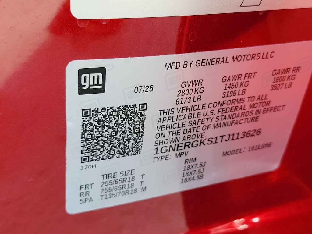Driver Confidence Package (HD Surround Vision, Key Card, Power Outlet, Rear Camera Mirror, Rear Pedestrian Alert, and Traffic Sign Recognition), Preferred Equipment Group 1LT, 6-Speaker Audio System Feature, Navigation System, Speed control, 3rd row seats: split-bench, 4-Way Manual Front Passenger Seat Adjuster, 4-Wheel Disc Brakes, 6 Speakers, 8-Way Power Driver Seat Adjuster, ABS brakes, Air Conditioning, Alloy wheels, AM/FM radio: SiriusXM with 360L, Apple CarPlay/Android Auto, Auto High-beam Headlights, Automatic temperature control, Brake assist, Bumpers: body-color, Child-Seat-Sensing Airbag, Compass, Delay-off headlights, Driver door bin, Driver vanity mirror, Dual front impact airbags, Dual front side impact airbags, Electronic Stability Control, Emergency communication system: OnStar, Four wheel independent suspension, Front anti-roll bar, Front Bucket Seats, Front Center Armrest, Front dual zone A/C, Front reading lights, Fully automatic headlights, Heated door mirrors, Heated front seats, Heated steering wheel, Illuminated entry, Low tire pressure warning, Occupant sensing airbag, Outside temperature display, Overhead airbag, Overhead console, Panic alarm, Passenger door bin, Passenger vanity mirror, Power door mirrors, Power driver seat, Power Liftgate, Power steering, Power windows, Premium Cloth Seat Trim, Radio data system, Rear air conditioning, Rear anti-roll bar, Rear reading lights, Rear window defroster, Rear window wiper, Remote keyless entry, Security system, Speed-sensing steering, Spoiler, Steering wheel mounted audio controls, Tachometer, Telescoping steering wheel, Tilt steering wheel, Traction control, Trip computer, Turn signal indicator mirrors, Variably intermittent wipers, Voltmeter, and Wheels: 18 Grazen Metallic Machined-Face Aluminum. Tax, title, license and dealer fees (unless itemized above) are extra. Not available with special finance or lease offers. See Dealer for Details. Price includes: $1500 - Customer Cash. Exp. 01/02/2026