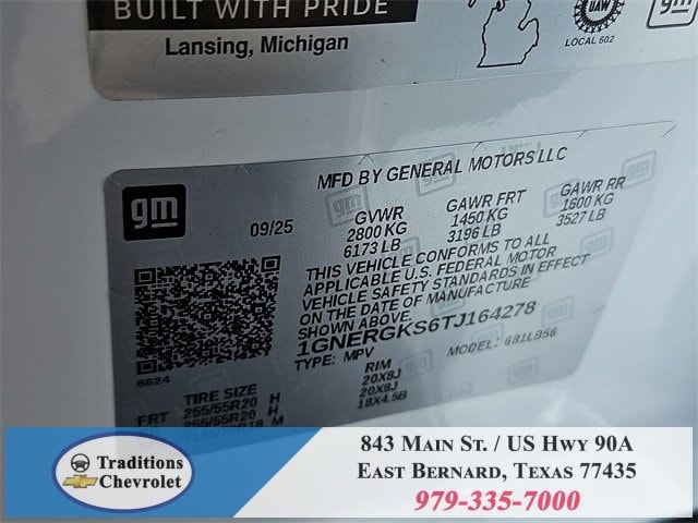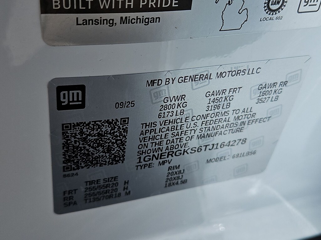 Preferred Equipment Group 1LT, Sun and Wheel Package (Power Dual Glass Panoramic Sliding Sunroof and Wheels: 20 Carbon Flash Metallic Aluminum), 3rd row seats: split-bench, 4-Way Manual Front Passenger Seat Adjuster, 4-Wheel Disc Brakes, 6 Speakers, 6-Speaker Audio System Feature, 8-Way Power Driver Seat Adjuster, ABS brakes, Air Conditioning, Alloy wheels, AM/FM radio: SiriusXM with 360L, Apple CarPlay/Android Auto, Auto High-beam Headlights, Automatic temperature control, Brake assist, Bumpers: body-color, Child-Seat-Sensing Airbag, Compass, Delay-off headlights, Driver door bin, Driver vanity mirror, Dual front impact airbags, Dual front side impact airbags, Electronic Stability Control, Emergency communication system: OnStar, Four wheel independent suspension, Front anti-roll bar, Front Bucket Seats, Front Center Armrest, Front dual zone A/C, Front reading lights, Fully automatic headlights, Heated door mirrors, Heated Driver and Front Passenger Seats, Heated front seats, Heated steering wheel, Illuminated entry, Low tire pressure warning, Navigation System, Occupant sensing airbag, Outside temperature display, Overhead airbag, Overhead console, Panic alarm, Passenger door bin, Passenger vanity mirror, Power door mirrors, Power driver seat, Power Liftgate, Power steering, Power windows, Premium Cloth Seat Trim, Radio data system, Radio: : Audio System w/17.7 Diagonal Display, Rear air conditioning, Rear anti-roll bar, Rear reading lights, Rear window defroster, Rear window wiper, Remote keyless entry, Security system, SiriusXM with 360L Trial Subscription, Speed control, Speed-sensing steering, Spoiler, Steering wheel mounted audio controls, Tachometer, Telescoping steering wheel, Tilt steering wheel, Traction control, Trip computer, Turn signal indicator mirrors, Variably intermittent wipers, Voltmeter, and Wheels: 18 Grazen Metallic Machined-Face Aluminum. Tax, title, license and dealer fees (unless itemized above) are extra. Not available with special finance or lease offers. See Dealer for Details. Price includes: $1500 - Customer Cash. Exp. 01/02/2026