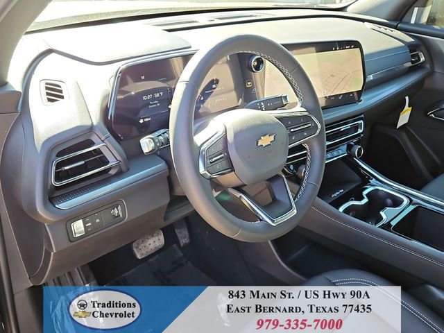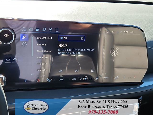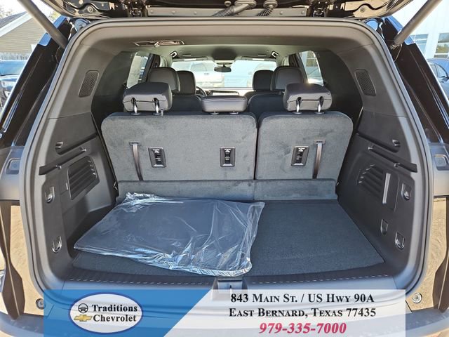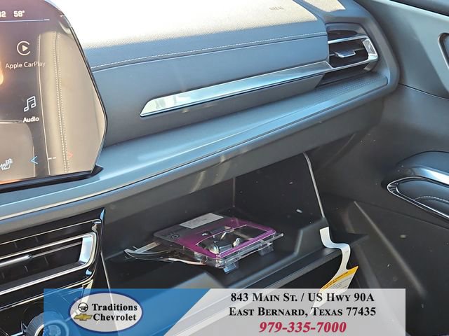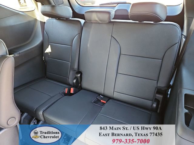 Preferred Equipment Group 1LT, 3rd row seats: split-bench, 4-Way Manual Front Passenger Seat Adjuster, 4-Wheel Disc Brakes, 6 Speakers, 6-Speaker Audio System Feature, 8-Way Power Driver Seat Adjuster, ABS brakes, Air Conditioning, Alloy wheels, AM/FM radio: SiriusXM with 360L, Apple CarPlay/Android Auto, Auto High-beam Headlights, Automatic temperature control, Brake assist, Bumpers: body-color, Child-Seat-Sensing Airbag, Compass, Delay-off headlights, Driver door bin, Driver vanity mirror, Dual front impact airbags, Dual front side impact airbags, Electronic Stability Control, Emergency communication system: OnStar, Four wheel independent suspension, Front anti-roll bar, Front Bucket Seats, Front Center Armrest, Front dual zone A/C, Front reading lights, Fully automatic headlights, Heated door mirrors, Heated Driver and Front Passenger Seats, Heated front seats, Heated steering wheel, Illuminated entry, Low tire pressure warning, Navigation System, Occupant sensing airbag, Outside temperature display, Overhead airbag, Overhead console, Panic alarm, Passenger door bin, Passenger vanity mirror, Power door mirrors, Power driver seat, Power Liftgate, Power steering, Power windows, Premium Cloth Seat Trim, Radio data system, Radio: : Audio System w/17.7 Diagonal Display, Rear air conditioning, Rear anti-roll bar, Rear reading lights, Rear window defroster, Rear window wiper, Remote keyless entry, Security system, SiriusXM with 360L Trial Subscription, Speed control, Speed-sensing steering, Spoiler, Steering wheel mounted audio controls, Tachometer, Telescoping steering wheel, Tilt steering wheel, Traction control, Trip computer, Turn signal indicator mirrors, Variably intermittent wipers, Voltmeter, and Wheels: 18 Grazen Metallic Machined-Face Aluminum.