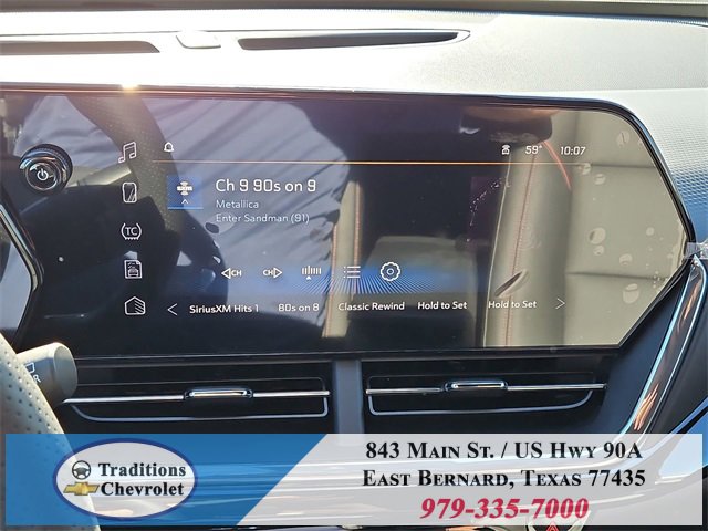 Driver Confidence Package (Adaptive Cruise Control, Rear Cross Traffic Alert, and Rear Park Assist), Preferred Equipment Group 2RS, License Plate Front Mounting Package, 2-Way Adjustable Front Head Restraints, 2-Way Power Driver Lumbar Seat Adjuster, 3.50 Final Drive Axle Ratio, 4-Way Manual Front Passenger Seat Adjuster, 4-Wheel Disc Brakes, 6 Speakers, 6-Speaker Audio System Feature, 8-Way Power Driver Seat Adjuster, ABS brakes, Air Conditioning, Alloy wheels, AM/FM radio: SiriusXM, Auto High-beam Headlights, Automatic temperature control, Brake assist, Bumpers: body-color, Compass, Delay-off headlights, Deleted Mobile Service Plus, Driver door bin, Driver vanity mirror, Dual front impact airbags, Dual front side impact airbags, Electronic Stability Control, Emergency communication system: OnStar One Essentials, Evotex Seat Trim, Exterior Parking Camera Rear, Front anti-roll bar, Front Bucket Seats, Front Center Armrest, Front reading lights, Front wheel independent suspension, Fully automatic headlights, Heated door mirrors, Heated front seats, Heated steering wheel, Illuminated entry, Leather steering wheel, Low tire pressure warning, Occupant sensing airbag, Outside temperature display, Overhead airbag, Overhead console, Panic alarm, Passenger door bin, Passenger vanity mirror, Power door mirrors, Power driver seat, Power steering, Power windows, Premium audio system: Chevrolet Infotainment 3, Radio data system, Radio: AM/FM Stereo Audio System, Rear window defroster, Rear window wiper, Remote keyless entry, Security system, SiriusXM Trial Subscription, Speed control, Split folding rear seat, Spoiler, Sport steering wheel, Steering wheel mounted audio controls, Tachometer, Telescoping steering wheel, Tilt steering wheel, Traction control, Trip computer, Variably intermittent wipers, Wheels: 19 Black-Painted Machined Aluminum, and Wireless Apple CarPlay/Wireless Android Auto.