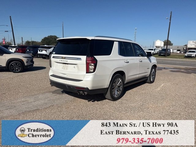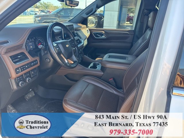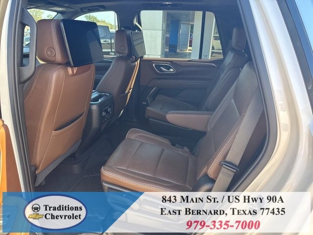 Advanced Trailering Package (Advanced Trailering System, Hitch Guidance w/Hitch View, Integrated Trailer Brake Controller, and Trailer Side Blind Zone Alert), High Country Deluxe (Adaptive Cruise Control, Air Ride Adaptive Suspension, Dual-Pane Power Panoramic Sunroof, Enhanced Automatic Emergency Braking, Floor Console, and Power-Retractable Assist Steps), License Plate Front Mounting Package, Max Trailering Package (Extra Capacity Cooling System), Preferred Equipment Group 3LZ (15 Diagonal Multi-Color Head-Up Display, 1st & 2nd Row Color-Keyed Carpeted Floor Mats, 2 USB Data Ports, 2-Speed Active Electronic AutoTrac Transfer Case, 3rd Row 60/40 Power-Folding Split-Bench Seat, Automatic Heated Steering Wheel, Bright Front & Rear Door Sill Plates, Chrome Door Handles w/Body-Color Strip, Color-Keyed Carpeting Floor Covering, Driver & Front Outboard Passenger Airbags, Dual Exhaust System, Enhanced Driver Information Center, Floor Console w/Storage Area, Front & Rear Park Assist, Hands-Free Rear Power Programmable Liftgate, HD Radio, HD Surround Vision, Heated 2nd Row Outboard Seats, Hill Descent Control, Infotainment Display, Inside Rearview Auto-Dimming Rear Camera Mirror, Lane Change Alert w/Side Blind Zone Alert, Lane Keep Assist w/Lane Departure Warning, Leather-Wrapped Steering Wheel, LED Daytime Running Lamps, Memory Settings, Outside Heated Power-Adjustable Mirrors, Power Release 2nd Row Bucket Seats, Power Tilt & Telescopic Steering Column, Rear Camera Mirror Washer, Rear Cross Traffic Alert, Rear Pedestrian Alert, Remote Start, Safety Alert Seat, SiriusXM NavTraffic, SiriusXM Radio w/360L, and Universal Home Remote), 4WD, Jet Black/Mocha Leather, 10 Speakers, 12-Way Power Driver & Passenger Seat Adjusters, 1st, 2nd & 3rd Rows All-Weather Floor Liners (LPO), 3.23 Rear Axle Ratio, 3rd row seats: split-bench, 4-Wheel Disc Brakes, ABS brakes, Adaptive suspension, Air Conditioning, Alloy wheels, AM/FM radio: SiriusXM with 360L, Apple CarPlay/Android Auto, Auto High-beam Headlights, Auto-dimming door mirrors, Auto-dimming Rear-View mirror, Auto-leveling suspension, Automatic temperature control, Bose 10-Speaker Centerpoint Surround Audio Sys Ft, Brake assist, Bumpers: body-color, Compass, Delay-off headlights, Driver door bin, Driver vanity mirror, Dual front impact airbags, Dual front side impact airbags, Electronic Stability Control, Emergency communication system: OnStar and Chevrolet connected services capable, Four wheel independent suspension, Front anti-roll bar, Front Bucket Seats, Front Center Armrest, Front dual zone A/C, Front High-Back Reclining Bucket Seats, Front reading lights, Fully automatic headlights, Garage door transmitter, Heads-Up Display, Heated & Ventilated Driver & Front Passenger Seats, Heated door mirrors, Heated Driver & Front Passenger Seats, Heated front seats, Heated rear seats, Heated steering wheel, Illuminated entry, Leather steering wheel, Low tire pressure warning, Magnetic Ride Control Suspension, Memory seat, Navigation System, Occupant sensing airbag, Outside temperature display, Overhead airbag, Overhead console, Panic alarm, Passenger door bin, Passenger vanity mirror, Perforated Leather Seat Trim, Power door mirrors, Power driver seat, Power Liftgate, Power passenger seat, Power steering, Power windows, Premium audio system: Chevrolet Infotainment 3, Radio: Chevrolet Infotainment 3 Premium System, Rain sensing wipers, Rear air conditioning, Rear anti-roll bar, Rear reading lights, Rear Seat Media System, Rear window defroster, Rear window wiper, Remote keyless entry, Roof rack: rails only, Security system, Set of 4 Wheel Locks (LPO), Speed control, Speed-sensing steering, Split folding rear seat, Spoiler, Steering wheel memory, Steering wheel mounted audio controls, Tachometer, Telescoping steering wheel, Tilt steering wheel, Traction control, Trip computer, Turn signal