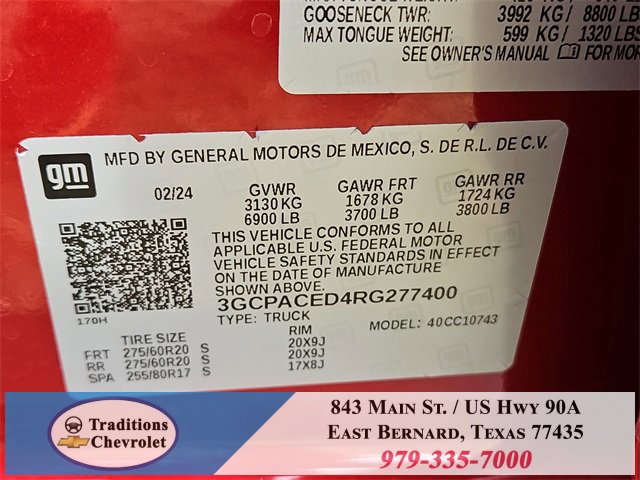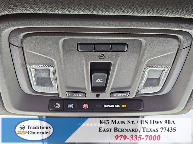 Convenience Package (10-Way Power Driver Seat w/Lumbar, 120-Volt Bed Mounted Power Outlet, 120-Volt Interior Power Outlet, Dual Rear USB Ports (Charge Only), Dual-Zone Automatic Climate Control, Heated Driver & Front Outboard Passenger Seats, Heated Steering Wheel, Keyless Open & Start, and Wrapped Steering Wheel), Convenience Package II (Hitch Guidance w/Hitch View, In-Vehicle Trailering System App, Integrated Trailer Brake Controller, Power Sliding Rear Window w/Rear Defogger, and Universal Home Remote), High Capacity Suspension Package, Preferred Equipment Group 1LT (12.3 Multicolor Reconfigurable Digital Display, All-Star Edition, Auto-Locking Rear Differential, Bluetooth® For Phone, Chevrolet Connected Access Capable, Chrome Mirror Caps, Color-Keyed Carpeting Floor Covering, Deep-Tinted Glass, Electrical Steering Column Lock, Electronic Cruise Control, EZ Lift Power Lock & Release Tailgate, Front Rubberized Vinyl Floor Mats, HD Rear Vision Camera, Heated Power-Adjustable Outside Mirrors, Inside Rear-View Mirror w/Tilt, LED Cargo Area Lighting, OnStar & Chevrolet Connected Services Capable, Power Front Windows w/Driver Express Up/Down, Power Front Windows w/Passenger Express Down, Power Rear Windows w/Express Down, Rear 60/40 Folding Bench Seat (Folds Up), Rear Rubberized-Vinyl Floor Mats, SiriusXM w/360L, Standard Tailgate, Steering Wheel Audio Controls, and Wi-Fi Hot Spot Capable), Remote Start Package (Electric Rear-Window Defogger, Remote Vehicle Starter System, and Theft Deterrent System (Unauthorized Entry)), Standard Suspension Package, Texas Edition Plus (Texas Edition Badging and Wheels: 20 x 9 Painted Aluminum), Trailering Package (Hitch Guidance), 10-Speed Automatic, Black Cloth, 170 Amp Alternator, 2 USB Data Ports, 220 Amp Alternator, 3.23 Rear Axle Ratio, 4-Wheel Disc Brakes, 40/20/40 Front Split-Bench Seat, 6 Speakers, 6-Speaker Audio System, ABS brakes, Air Conditioning, Alloy wheels, AM/FM radio: SiriusXM with 360L, Auto High-beam Headlights, Automatic Emergency Braking, Automatic temperature control, Auxiliary External Transmission Oil Cooler, Brake assist, Bumpers: chrome, Cloth Seat Trim, Compass, Delay-off headlights, Driver door bin, Driver vanity mirror, Dual front impact airbags, Dual front side impact airbags, Electronic Stability Control, Electronic Transmission Range Selector Shifter, External Engine Oil Cooler, Floor Mounted Center Console, Following Distance Indicator, Forward Collision Alert, Front anti-roll bar, Front Bucket Seats, Front Center Armrest w/Storage, Front dual zone A/C, Front License Plate Kit, Front Pedestrian Braking, Front reading lights, Front wheel independent suspension, Fully automatic headlights, Heated door mirrors, Heated front seats, Heated steering wheel, Illuminated entry, IntelliBeam Automatic High Beam On/Off, Lane Keep Assist w/Lane Departure Warning, Low tire pressure warning, Multi-Flex Tailgate, Occupant sensing airbag, Outside temperature display, Overhead airbag, Overhead console, Panic alarm, Passenger door bin, Passenger vanity mirror, Power door mirrors, Power driver seat, Power steering, Power windows, Premium audio system: Chevrolet Infotainment 3 Premium, Radio data system, Radio: Chevrolet Infotainment 3 Premium System, Rear reading lights, Rear step bumper, Rear window defroster, Remote keyless entry, Security system, Speed control, Speed-sensing steering, Split folding rear seat, Steering wheel mounted audio controls, Tachometer, Telescoping steering wheel, Tilt steering wheel, Traction control, Trip computer, Variably intermittent wipers, Voltmeter, Wheels: 17 x 8 Bright Silver Painted Aluminum, and Wireless Charging.