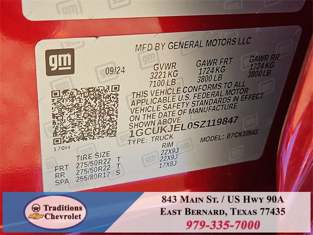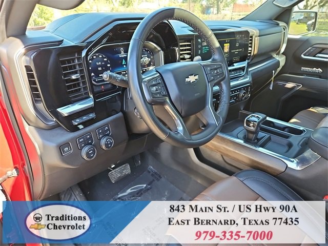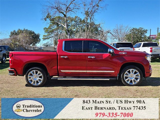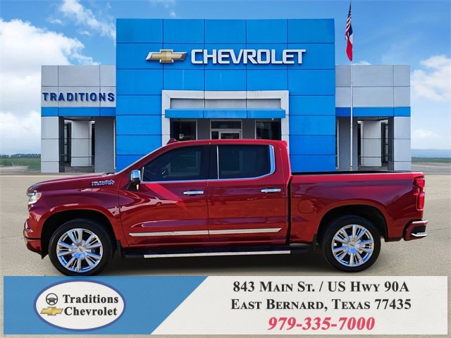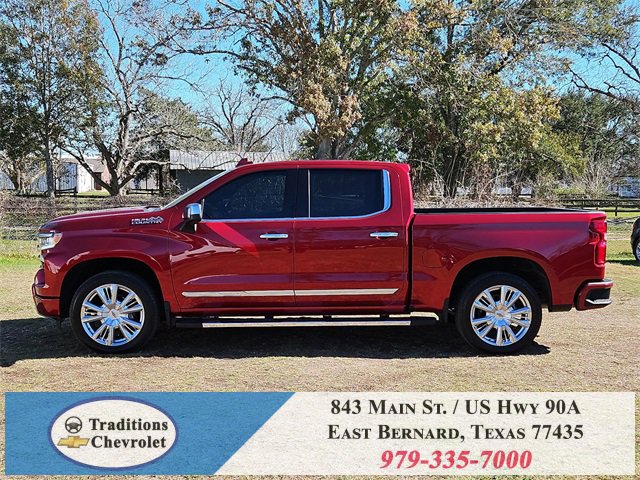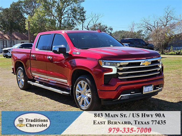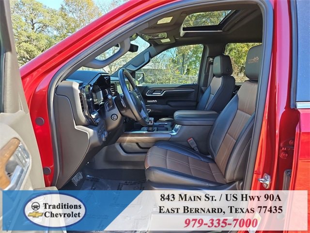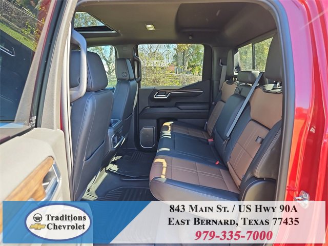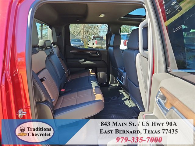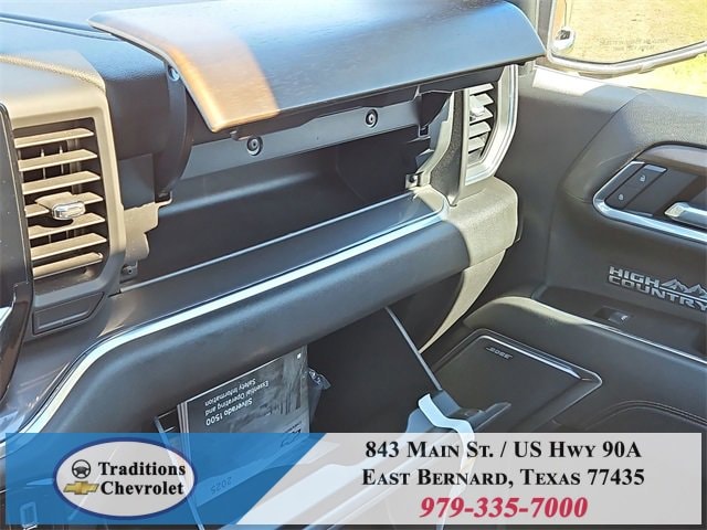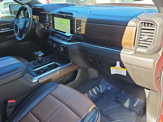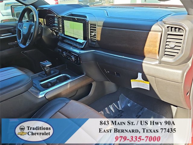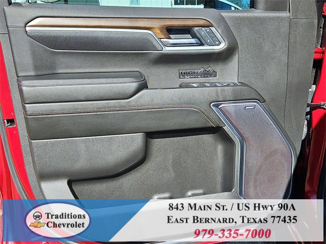 Clean CARFAX. 10-Speed Automatic, 4WD, Jet Black/Umber Leather. CARFAX One-Owner. Priced below KBB Fair Purchase Price!High Capacity Suspension Package, High Country Premium Package (All-Weather Floor Liner (LPO), Power Sunroof, and Wheels: 22 x 9 Painted Aluminum), Preferred Equipment Group 3LZ (10-Way Power Driver Seat w/Lumbar, 10-Way Power Passenger Seat Adjuster w/Lumbar, 12.3 Multicolor Reconfigurable Digital Display, 120-Volt Bed Mounted Power Outlet, 120-Volt Interior Power Outlet, 2 USB Data Ports, 2nd Row Heated Outboard Seats, Adaptive Cruise Control, Auto-Dimming Inside Rear-View Mirror, Auto-Locking Rear Differential, Bed View Camera, Bluetooth® For Phone, Body-Color Painted Mirror Caps, Chevytec Spray-On Black Bedliner, Chrome Assist Steps, Chrome Recovery Hooks, Color-Keyed Carpeting Floor Covering, Deep-Tinted Glass, Driver Memory, Dual Exhaust w/Polished Outlets, Dual Rear USB Ports (Charge Only), Electric Rear-Window Defogger, Floor Mounted Center Console, Front Carpeted Floor Mats, Front LED Fog Lamps, Front Rain-Sensing Wipers, HD Surround Vision, Heated Driver & Front Outboard Passenger Seats, Heated Steering Wheel, Hitch Guidance w/Hitch View, In-Vehicle Trailering System App, Integrated Trailer Brake Controller, Keyless Open & Start, LED Cargo Area Lighting, OnStar Services Capable, Outside Heated Power-Adjustable Mirrors, Perimeter Lighting, Power Front Passenger Windows w/Express Up/Down, Power Front Windows w/Driver Express Up/Down, Power Rear Windows w/Express Down, Power Sliding Rear Window w/Rear Defogger, Power Tailgate, Power Tilt & Telescoping Steering Column, Rear Carpeted Floor Mats, Rear Cross Traffic Braking, Rear Pedestrian Alert, Rear Wheelhouse Liners, Remote Vehicle Starter System, Safety Alert Seat, SiriusXM w/360L Trial Subscription, Standard Tailgate, Steering Wheel Audio Controls, Teen Driver, Theft Deterrent System (Unauthorized Entry), Tire Pressure Monitoring System, Trailer Camera Provisions, Trailer Side Blind Zone Alert, Ultrasonic Front & Rear Park Assist, Universal Home Remote, Ventilated Driver & Front Passenger Seats, Wi-Fi Hot Spot Capable, and Wrapped Steering Wheel), Technology Package (15 Diagonal Multicolor Head-Up Display and Rear Camera Mirror), Trailering Package (Hitch Guidance), Up-Level Rear Seat w/Storage Package, 10-Speed Automatic, 4WD, Jet Black/Umber Leather, 170 Amp Alternator, 3.23 Rear Axle Ratio, 4-Wheel Disc Brakes, 7 Speakers, ABS brakes, Adaptive Ride Control Suspension, Air Conditioning, Alloy wheels, AM/FM radio: SiriusXM with 360L, Apple CarPlay/Android Auto, Auto High-beam Headlights, Auto-dimming door mirrors, Auto-dimming Rear-View mirror, Automatic temperature control, Bodyside moldings, Brake assist, Bumpers: body-color, Compass, Delay-off headlights, Driver door bin, Driver vanity mirror, Dual Active Exhaust, Dual front impact airbags, Dual front side impact airbags, Electronic Stability Control, Electronic Transmission Range Selector Shifter, Emergency communication system: OnStar, Enhanced Automatic Emergency Braking, Following Distance Indicator, Forward Collision Alert, Front anti-roll bar, Front Bucket Seats, Front Center Armrest, Front dual zone A/C, Front fog lights, Front License Plate Kit, Front Pedestrian Braking, Front reading lights, Front wheel independent suspension, Fully automatic headlights, Garage door transmitter, Genuine wood console insert, Genuine wood dashboard insert, Genuine wood door panel insert, Heated door mirrors, Heated front seats, Heated rear seats, Heated steering wheel, Illuminated entry, IntelliBeam Automatic High Beam On/Off, Lane Keep Assist w/Lane Departure Warning, Low tire pressure warning, Memory seat, Occupant sensing airbag, Outside temperature display, Overhead airbag, Overhead console, Panic alarm, Passenger door bin, Passenger vanity mirror, Perforated Leather Seat Trim, Power door mirrors, Power driver seat, Power passenger seat, Power steering, Power windows, Premium audio system: