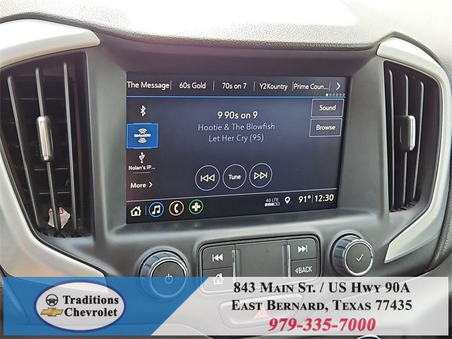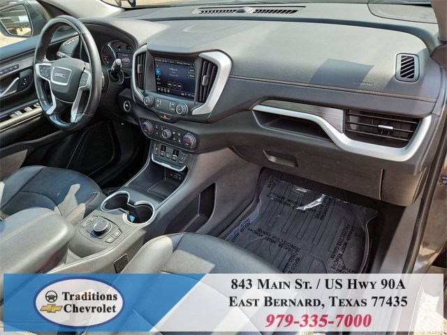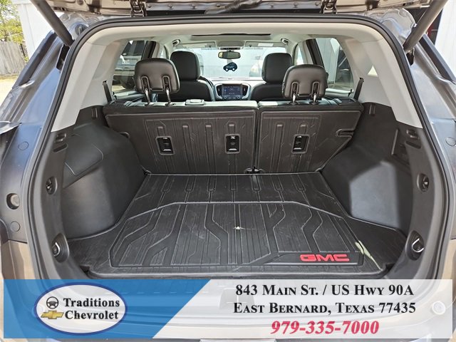 Driver Alert Package I (Lane Change Alert w/Side Blind Zone Alert, Rear Cross-Traffic Alert, Rear Park Assist, and Safety Alert Seat), Floor Liner Package (LPO) (Front & Rear All-Weather Floor Liners (LPO) and Integrated Cargo Liner (LPO)), License Plate Front Mounting Package, Memory Package, Preferred Equipment Group 4SA, Preferred Package (6-Way Power Front Passenger Seat, Front Passenger 2-Way Power Lumbar, Hands-Free Rear Power Programmable Liftgate, Heated Steering Wheel, and Universal Home Remote), 2 USB Data Ports, 2 USB Data Ports w/SD Card Reader, 4-Way Manual Front Passenger Seat, 4-Wheel Antilock 4-Wheel Disc Brakes, 4-Wheel Disc Brakes, 6 Speakers, 6-Speaker Audio System Feature, 8-Way Power Driver Seat Adjuster, ABS brakes, Air Conditioning, Alloy wheels, AM/FM radio: SiriusXM, Apple CarPlay/Android Auto, Auto-dimming door mirrors, Auto-dimming Rear-View mirror, Automatic temperature control, Bluetooth® For Phone, Brake assist, Bumpers: body-color, Compass, Delay-off headlights, Driver & Front Passenger Heated Seats, Driver door bin, Driver vanity mirror, Dual Exhaust w/Bright Tips, Dual front impact airbags, Dual front side impact airbags, Electronic Stability Control, Emergency communication system, Exterior Parking Camera Rear, Four wheel independent suspension, Front anti-roll bar, Front Bucket Seats, Front Center Armrest, Front dual zone A/C, Front fog lights, Front reading lights, Fully automatic headlights, Heated door mirrors, Heated front seats, High-Intensity Discharge Headlights, Illuminated entry, Low tire pressure warning, Occupant sensing airbag, Outside temperature display, Overhead airbag, Overhead console, Panic alarm, Passenger door bin, Passenger vanity mirror, Perforated Leather-Appointed Seat Trim, Power door mirrors, Power Driver Lumbar Control, Power driver seat, Power steering, Power windows, Radio data system, Radio: GMC Infotainment Audio System w/8 Display, Rear anti-roll bar, Rear seat center armrest, Rear window defroster, Rear window wiper, Remote keyless entry, Roof rack: rails only, Security system, SiriusXM Radio, Skyscape Power Sunroof w/Power Sunscreen, Speed control, Speed-sensing steering, Split folding rear seat, Spoiler, Steering wheel mounted audio controls, Tachometer, Telescoping steering wheel, Tilt steering wheel, Traction control, Trip computer, Turn signal indicator mirrors, Variably intermittent wipers, Wheels: 18 x 7 Machined Aluminum w/Gray Accents, and Wheels: 19 x 7.5 Machined Aluminum w/Gray Accents.