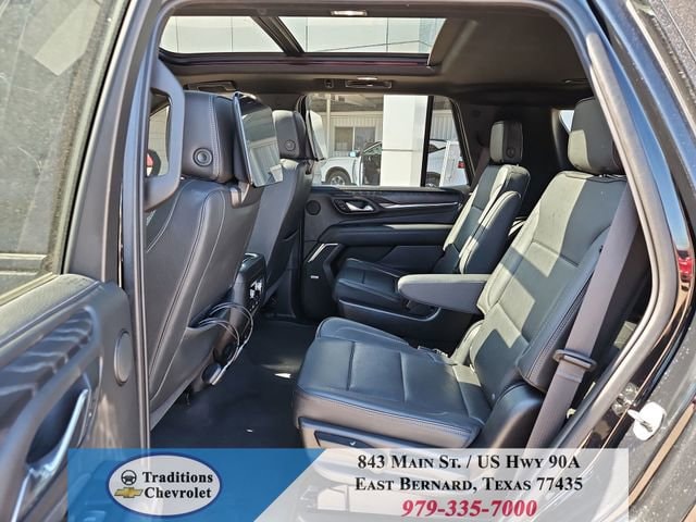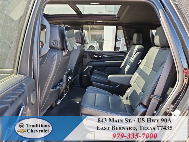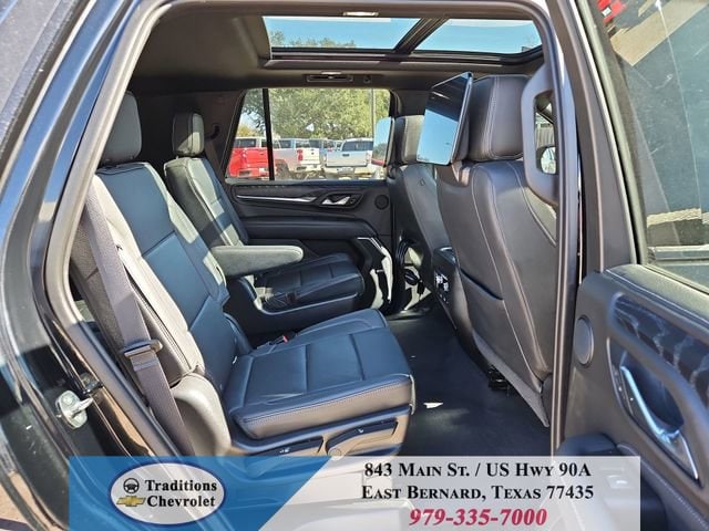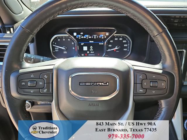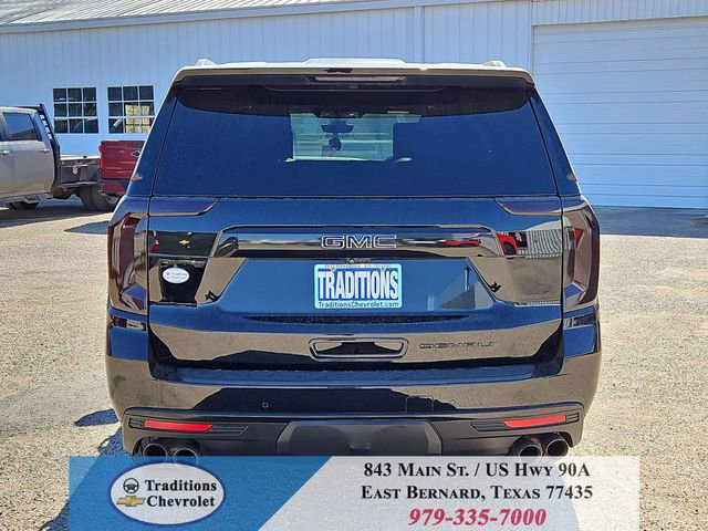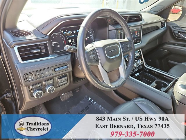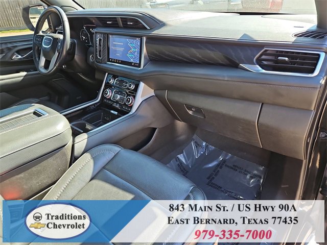 Advanced Security Package (Glass Breakage Sensor, Theft-Deterrent Alarm System, Vehicle Inclination Sensor, and Vehicle Interior Movement Sensor), Advanced Technology Package (Adaptive Cruise Control, Enhanced Automatic Emergency Braking, Inside Rearview Auto-Dimming Rear Camera Mirror, and Rear Camera Mirror Washer), Denali Ultimate Package (Dual-Pane Panoramic Power Sunroof, Power-Retractable Assist Steps, and Rear Seat Media System), License Plate Front Mounting Package, Max Trailering Package (Extra Capacity Cooling System), Preferred Equipment Group 5SA (12-Way Power Seat Adjusters, 15 Diagonal Multi-Color Head-Up Display, 2 Presets For Outside Rearview Mirrors, 3rd Row 60/40 Power-Folding Split-Bench Seat, Bright Front & Rear Door Sill Plates, Chrome Door Handles w/Body-Color Strip, Dual Exhaust System, Galvano Bodyside Moldings, Hands-Free Power Programmable Rear Liftgate, HD Surround Vision, Heated & Ventilated Driver & Front Passenger Seats, Heated 2nd Row Outboard Position Seats, Heated Automatic Steering Wheel, Heated Driver & Front Passenger Seats, Hill Descent Control, Inside Rear-View Auto-Dimming Mirror, Outside Heated Power-Adjustable Mirrors, Power Release 2nd Row Bucket Seats, Power Tilt & Telescopic Steering Column, Rear Pedestrian Alert, Safety Alert Seat, and Universal Home Remote), Premium Capability Package w/Active Response 4WD (Air Ride Adaptive Suspension and Electronic Limited Slip Differential (eLSD)), 4WD, 14 Speakers, 3.23 Rear Axle Ratio, 3rd row seats: split-bench, 4-Wheel Disc Brakes, ABS brakes, Adaptive suspension, Air Conditioning, Alloy wheels, AM/FM radio: SiriusXM with 360L, Apple CarPlay/Android Auto, Auto High-beam Headlights, Auto-dimming door mirrors, Auto-dimming Rear-View mirror, Auto-leveling suspension, Automatic Emergency Braking, Automatic temperature control, Bodyside moldings, Bose 14-Speaker Surround w/CenterPoint, Brake assist, Bumpers: body-color, Compass, Delay-off headlights, Driver door bin, Driver vanity mirror, Dual front impact airbags, Dual front side impact airbags, Electronic Stability Control, Emergency communication system: OnStar and GMC connected services capable, Floor Console, Following Distance Indicator, Forward Collision Alert, Four wheel independent suspension, Front & Rear Park Assist, Front anti-roll bar, Front Bucket Seats, Front Center Armrest, Front dual zone A/C, Front fog lights, Front Pedestrian Braking, Front reading lights, Fully automatic headlights, Garage door transmitter, HD Radio, Heads-Up Display, Heated door mirrors, Heated front seats, Heated rear seats, Heated steering wheel, Hitch Guidance w/Hitch View, Illuminated entry, In-Vehicle Trailering App, Integrated Trailer Brake Controller, IntelliBeam Automatic High Beam On/Off, Jet Black Interior Trim, Lane Change Alert w/Side Blind Zone Alert, Lane Keep Assist w/Lane Departure Warning, Leather steering wheel, Low tire pressure warning, Magnetic Ride Control Suspension, Memory seat, Navigation System, Occupant sensing airbag, Outside temperature display, Overhead airbag, Overhead console, Panic alarm, Passenger door bin, Passenger vanity mirror, Perforated Leather Seating Surfaces, Power door mirrors, Power driver seat, Power Liftgate, Power passenger seat, Power steering, Power windows, Radio: AM/FM/SiriusXM w/Navigation, Rain sensing wipers, Rear air conditioning, Rear anti-roll bar, Rear Cross Traffic Alert, Rear reading lights, Rear window defroster, Rear window wiper, Remote keyless entry, Roof rack: rails only, Security system, SiriusXM w/360L, Speed control, Speed-sensing steering, Split folding rear seat, Spoiler, Steering wheel memory, Steering wheel mounted audio controls, Tachometer, Telescoping steering wheel, Tilt steering wheel, Traction control, Trailer Side Blind Zone Alert, Trip computer, Turn signal indicator mirrors, Variably intermittent wipers, Ventilated front seats, Voltmeter, Wheel Locks, Wh