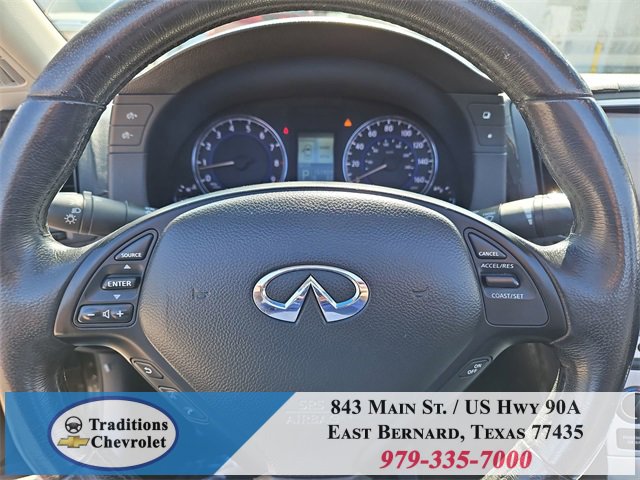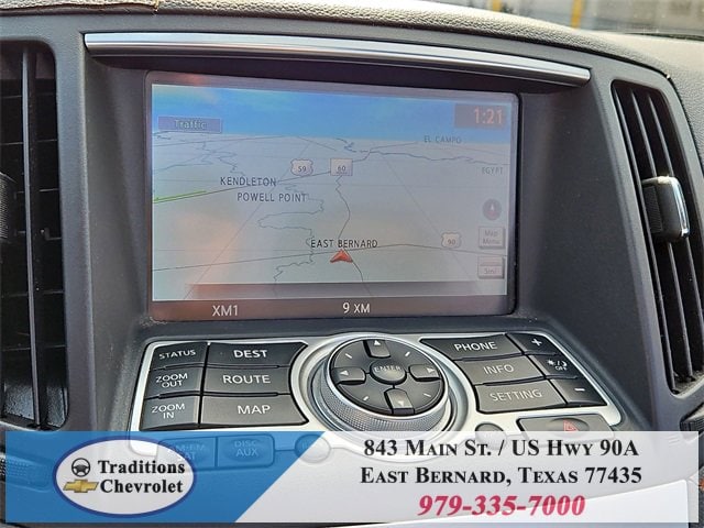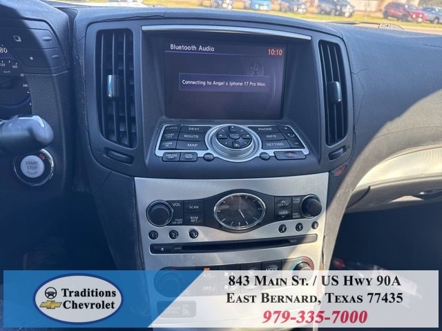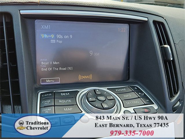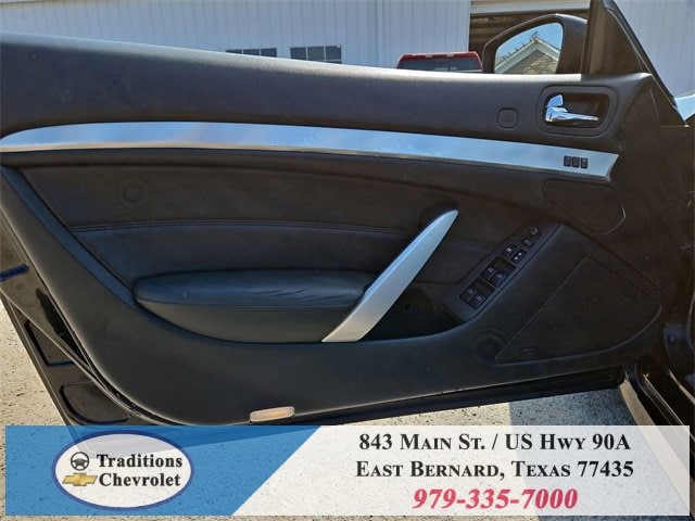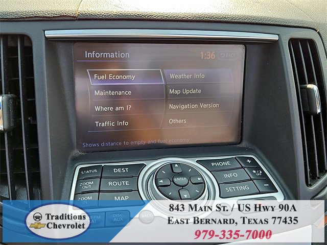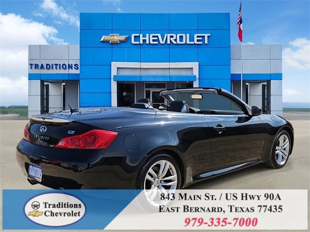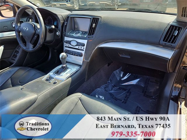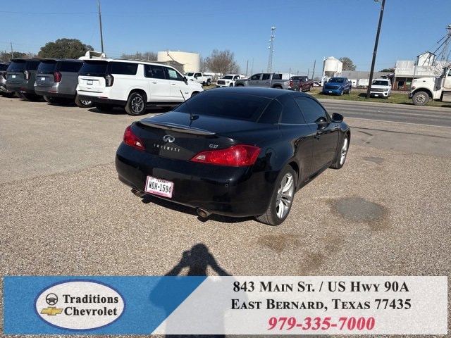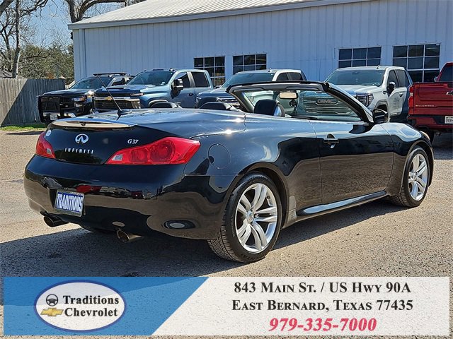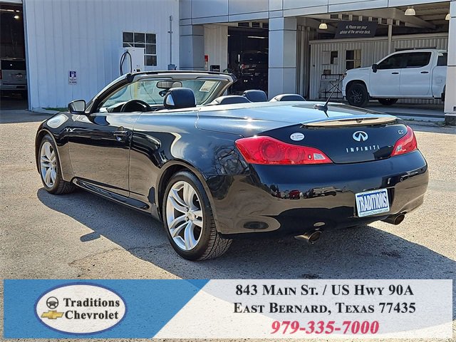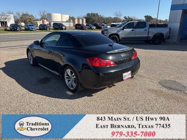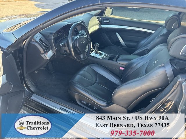 Navigation Package (9.3GB Music Box HD, Bluetooth® Advanced Audio Distribution, INFINITI Hard Drive Navigation System, and XM NavTraffic), Premium Package (2-Way Driver's Seat Power Lumbar Support, Climate Controlled Front Seats, Memory System, Power Tilt & Telescopic Steering Wheel, Radio: AM/FM w/BOSE Open Air Sound System, and Rear Sonar System), Graphite Leather, 18 Wheels, 19 9-Spoke Aluminum-Alloy Wheels, 4-Wheel Disc Brakes, 6 Speakers, ABS brakes, Air Conditioning, Alloy wheels, AM/FM radio: XM, AM/FM/CD Player w/MP3/WMA Capability, Anti-whiplash front head restraints, Automatic temperature control, Brake assist, Bumpers: body-color, CD player, Convertible HardTop, Convertible roof lining, Delay-off headlights, Driver door bin, Driver vanity mirror, Dual front impact airbags, Dual front side impact airbags, Electronic Stability Control, Exterior Parking Camera Rear, First Aid Kit, Four wheel independent suspension, Front anti-roll bar, Front Bucket Seats, Front Center Armrest, Front dual zone A/C, Front fog lights, Front reading lights, Fully automatic headlights, Garage door transmitter: HomeLink, Glass rear window, Heated door mirrors, Heated Front Bucket Seats, Heated front seats, High intensity discharge headlights: Bi-Xenon, Illuminated entry, Illuminated Kick Plates, Integrated roll-over protection, Leather Appointed Seats, Leather Shift Knob, Leather steering wheel, Low tire pressure warning, Occupant sensing airbag, Outside temperature display, Overhead airbag, Overhead console, Panic alarm, Passenger door bin, Passenger vanity mirror, Power convertible roof, Power door mirrors, Power driver seat, Power passenger seat, Power steering, Power windows, Radio data system, Rear anti-roll bar, Rear Wind Deflector, Rear window defroster, Remote keyless entry, Security system, Speed control, Speed-sensing steering, Speed-Sensitive Wipers, Steering wheel mounted audio controls, Tachometer, Telescoping steering wheel, Tilt steering wheel, Traction control, Trip computer, and Variably intermittent wipers.
